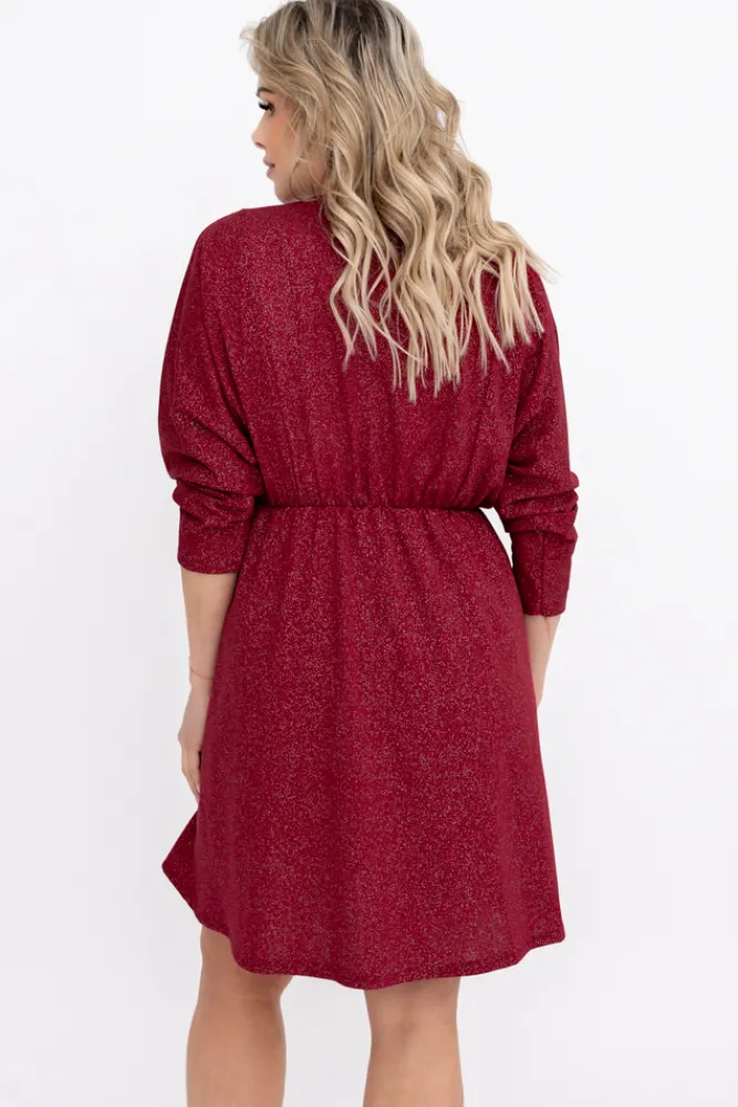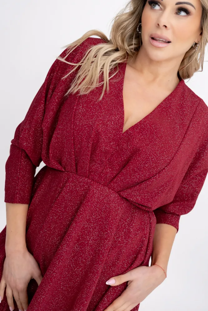 Włoski Bordowa Sukienka błyszcząca LORINO