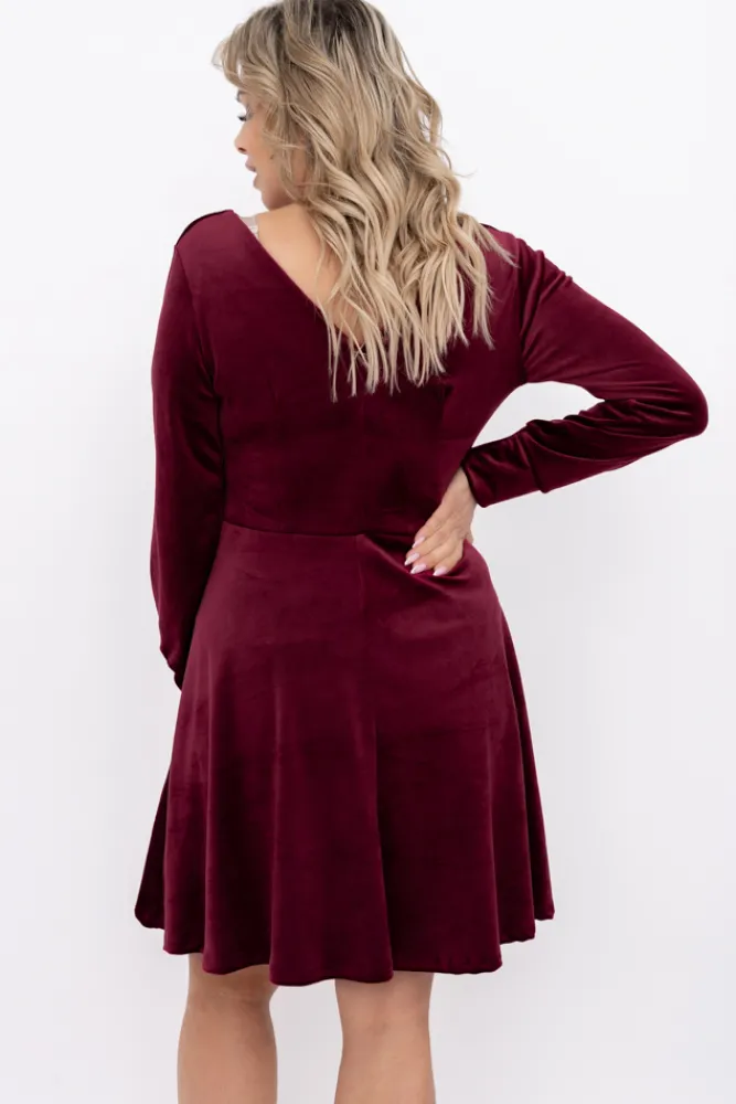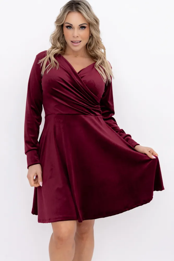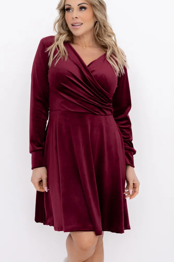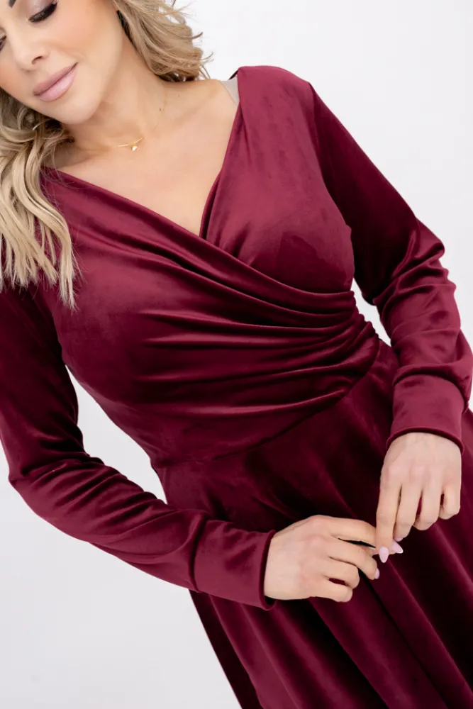 Włoski Bordowa Sukienka welurowa WARKOZIA