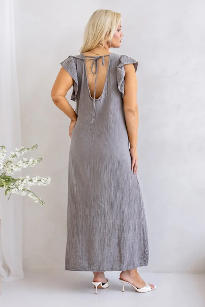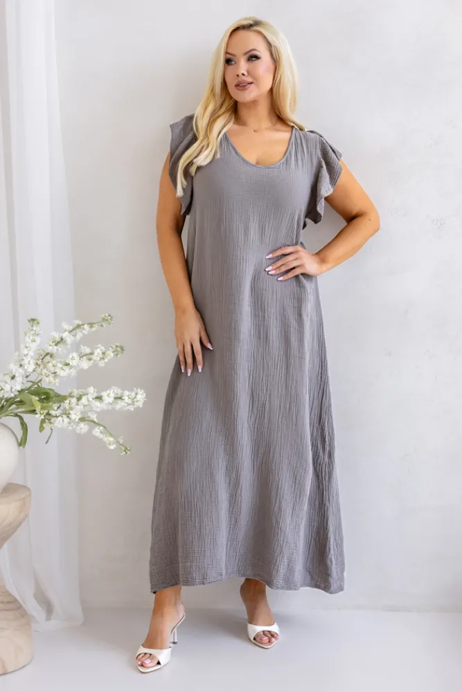 Włoski Brązowoszara Sukienka SINZI