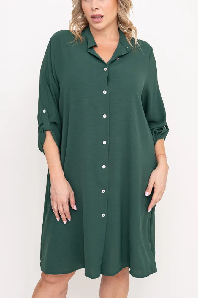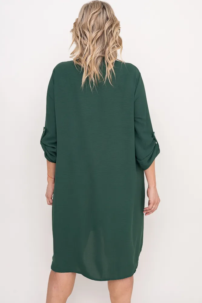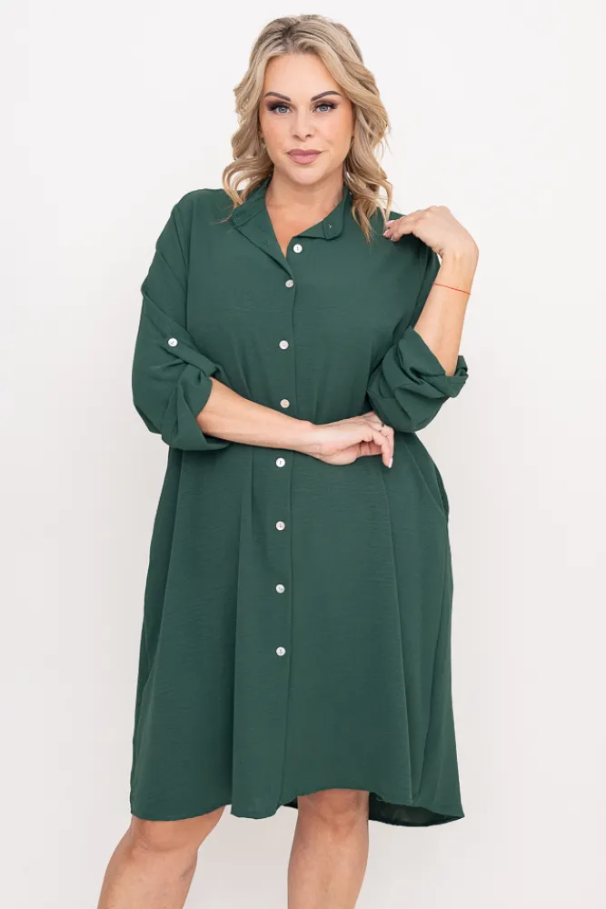 Włoski Butelkowozielona Sukienka koszulowa KANTARI