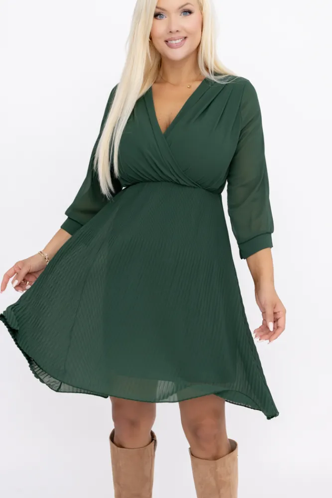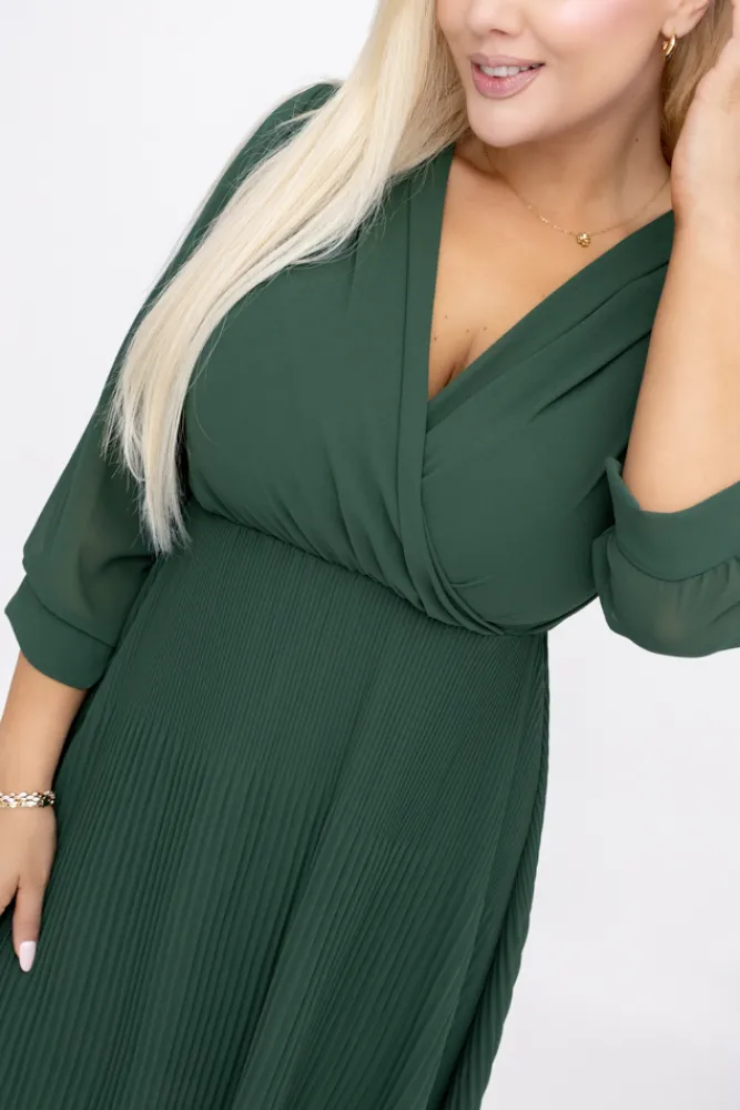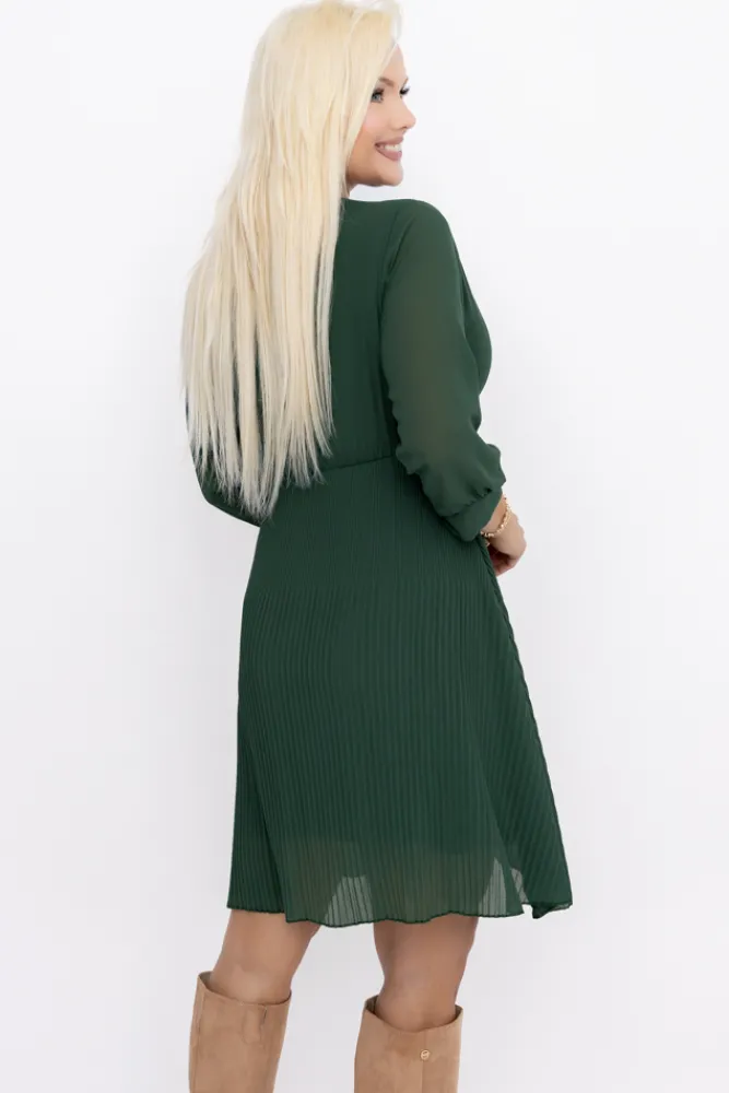 Włoski Butelkowozielona Sukienka szyfonowa plisowana UNTURI