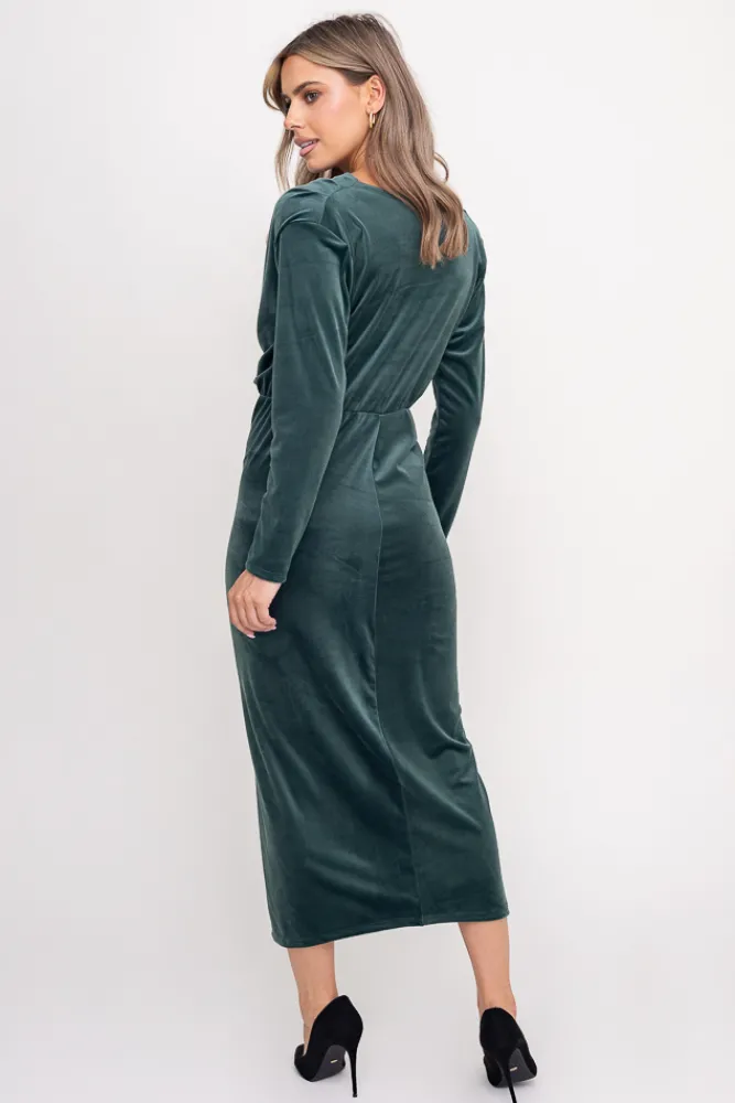 Włoski Butelkowozielona Sukienka welurowa KASIOPI