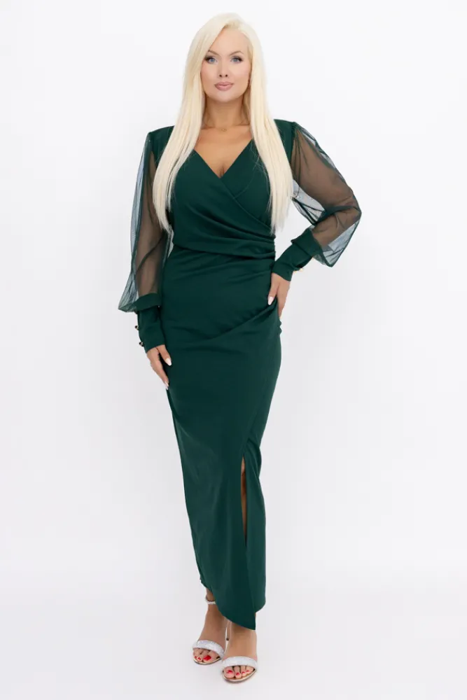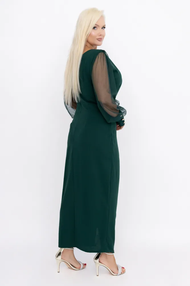Włoski Butelkowozielona Sukienka z prześwitującymi rękawami MERVIEN