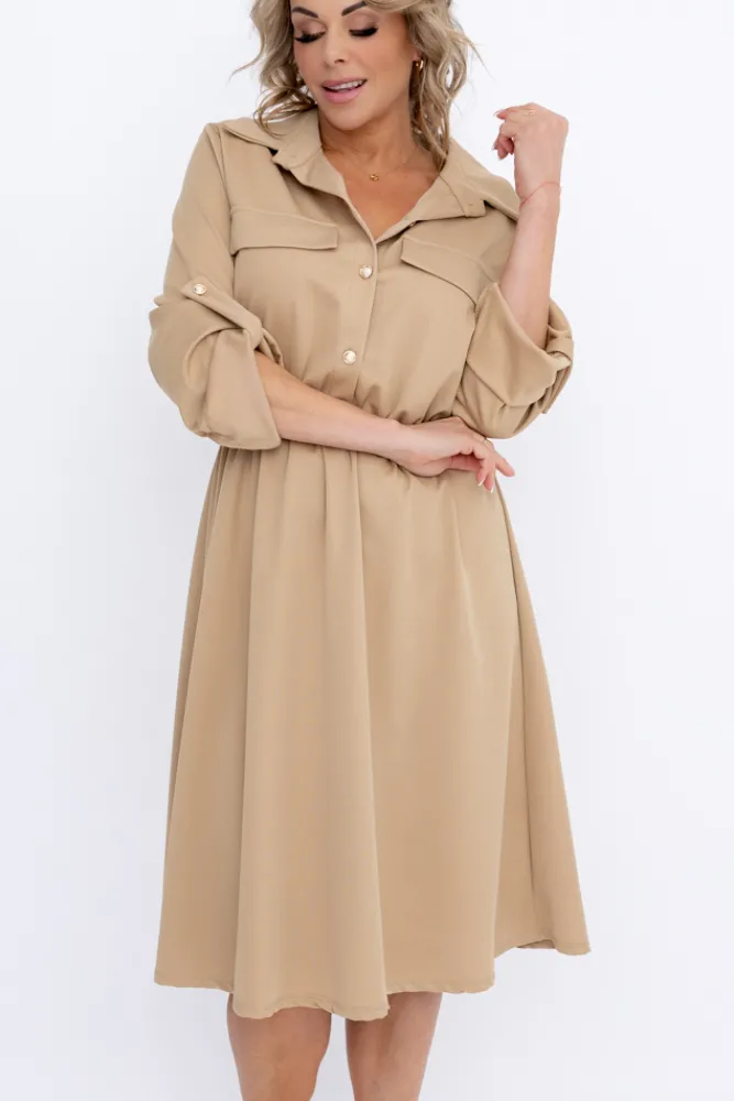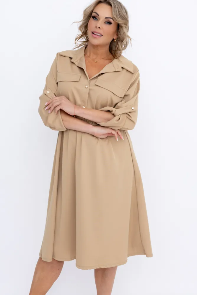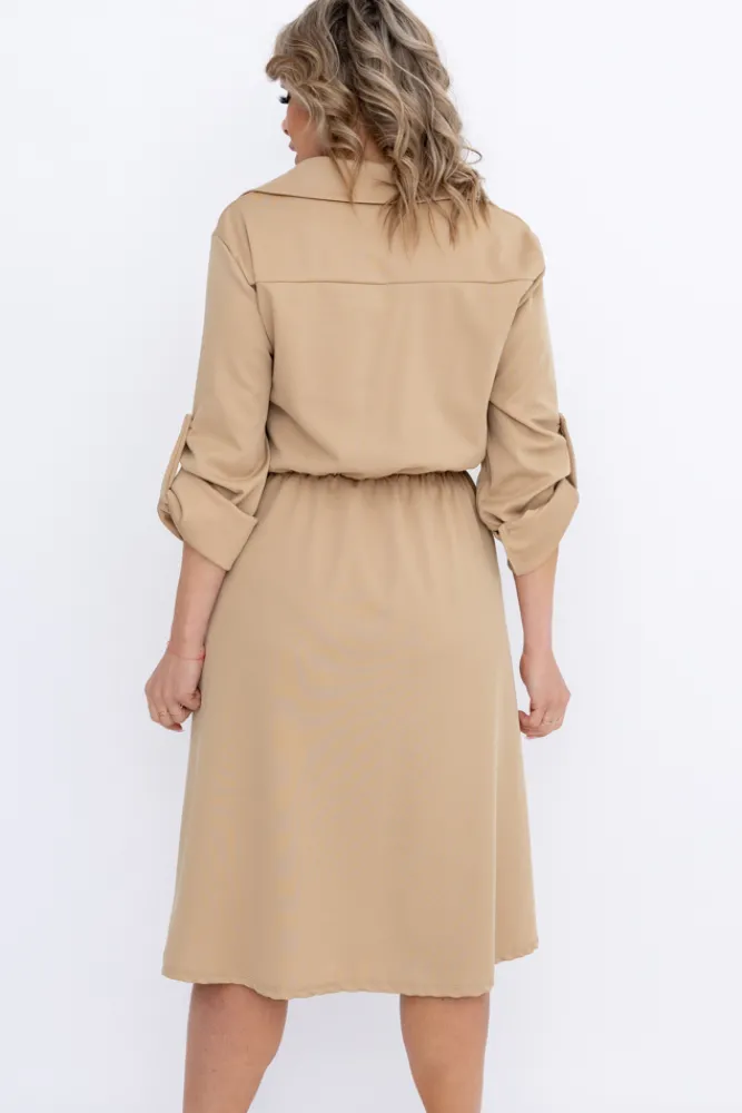 Włoski Camelowa Sukienka EVERI