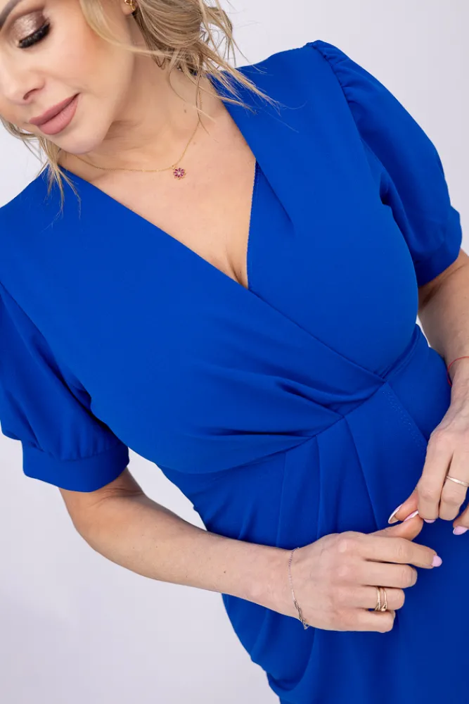 Włoski Chabrowa Sukienka z marszczeniem MERTIGA