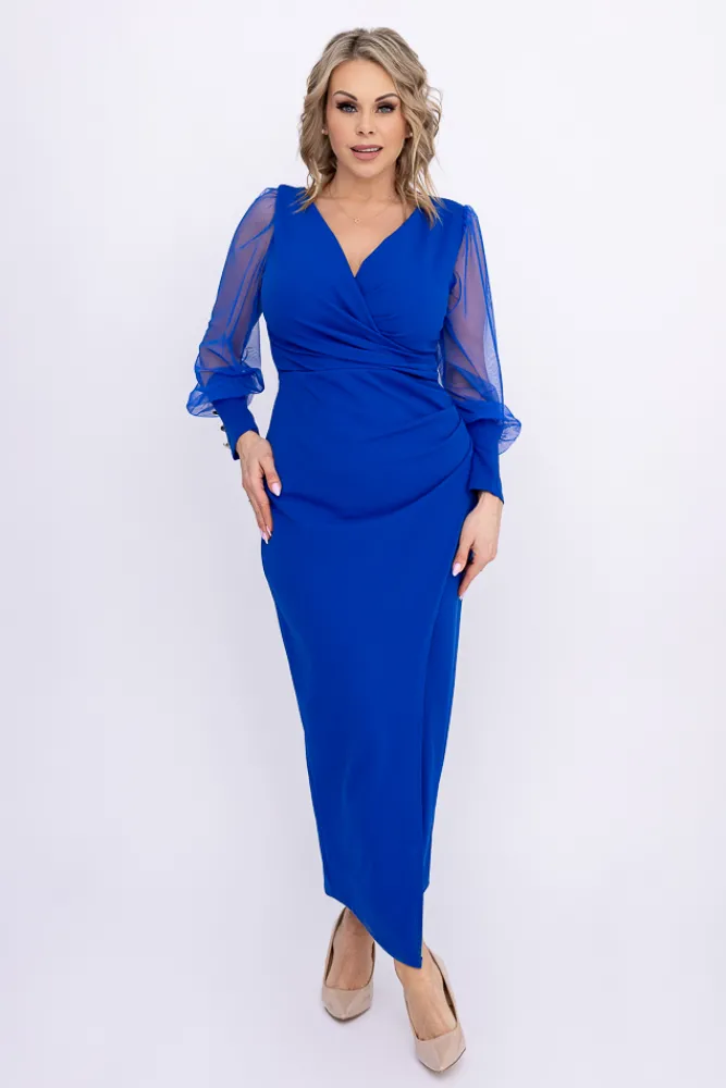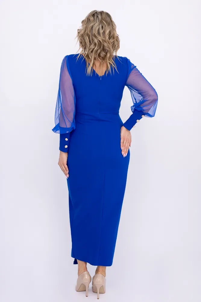 Włoski Chabrowa Sukienka z prześwitującymi rękawami MERVIEN