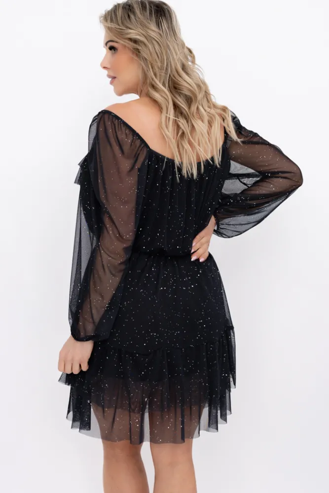 Włoski Czarna błyszcząca Sukienka siateczkowa VELIENO Wzór 1
