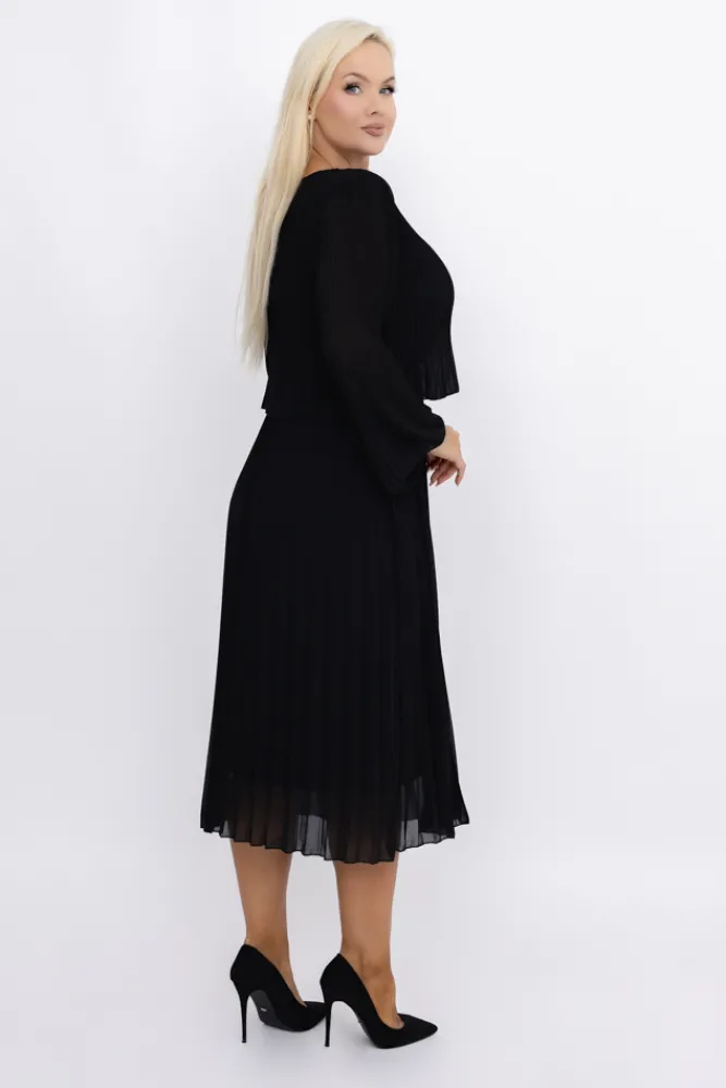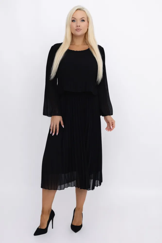 Włoski Czarna plisowana Sukienka szyfonowa REVERTI