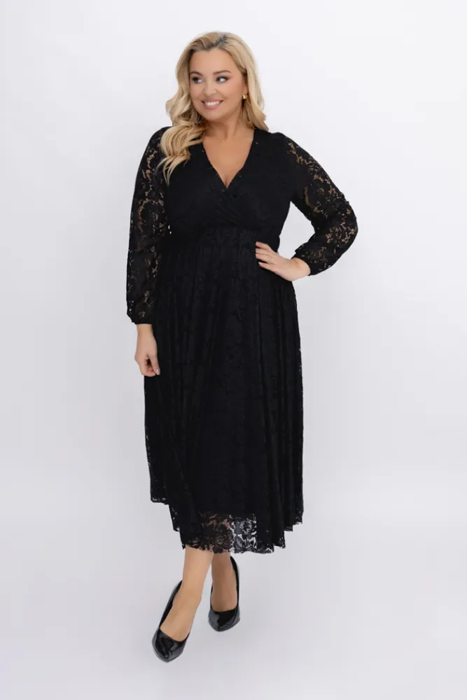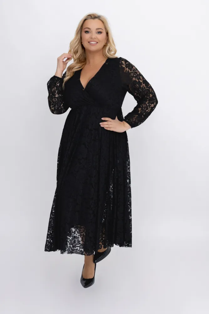 Włoski Czarna Sukienka koronkowa VERIENA