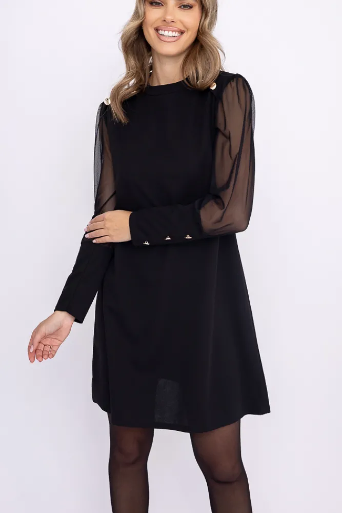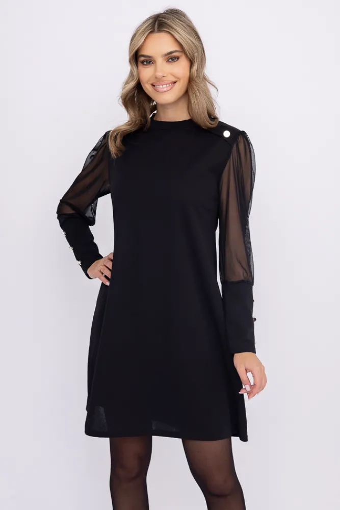 Włoski Czarna Sukienka z prześwitującymi rękawami ARTIGA
