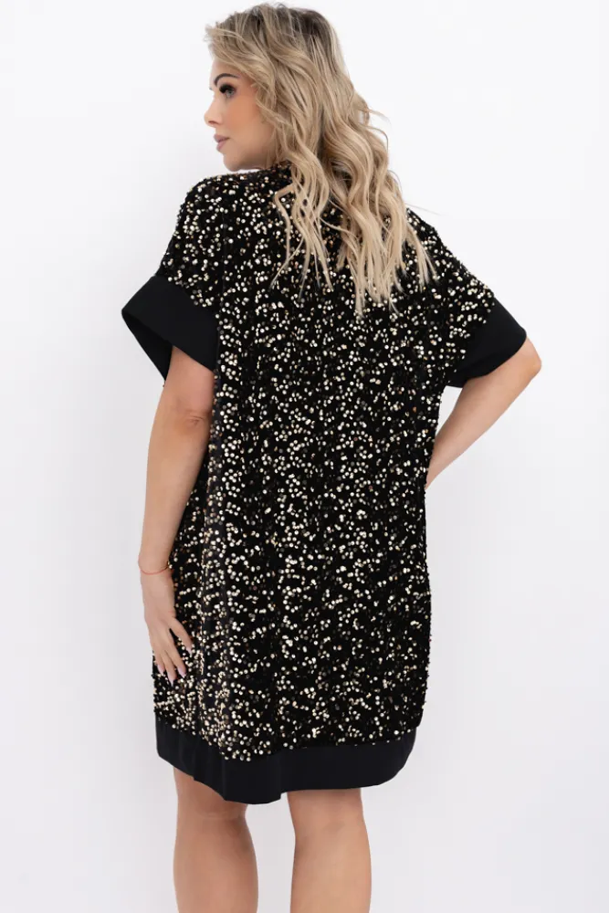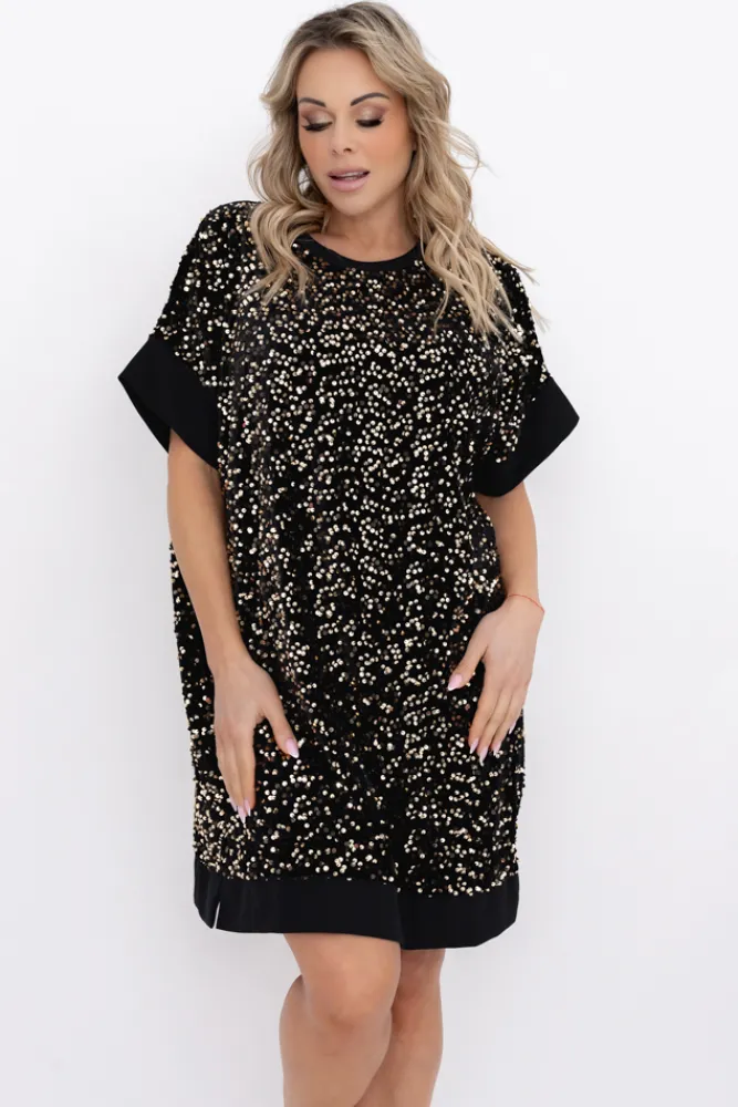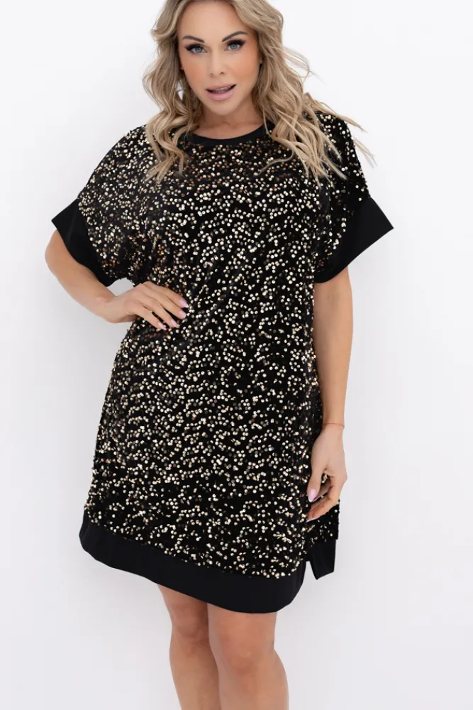 Włoski Czarno-złota Sukienka z cekinami SIMENO