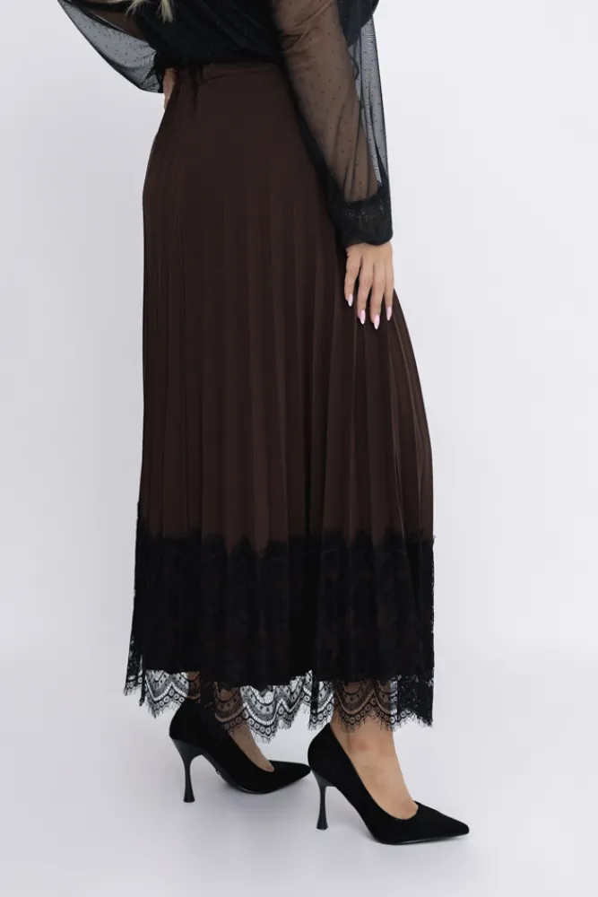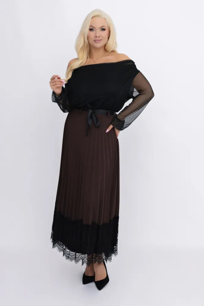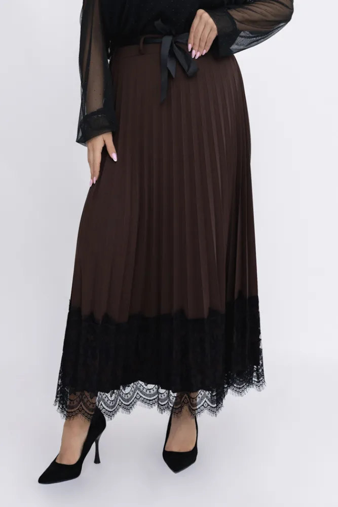 Włoski Czekoladowa Spódnica plisowana z paskiem GARIOLI