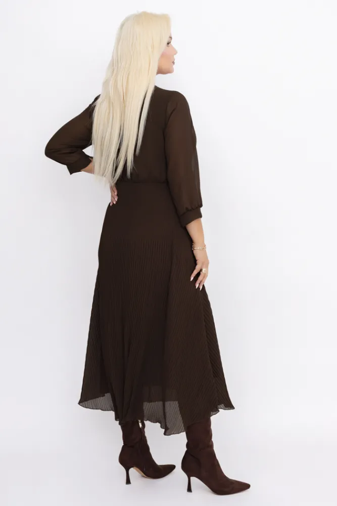 Włoski Czekoladowa Sukienka plisowana KEMELI
