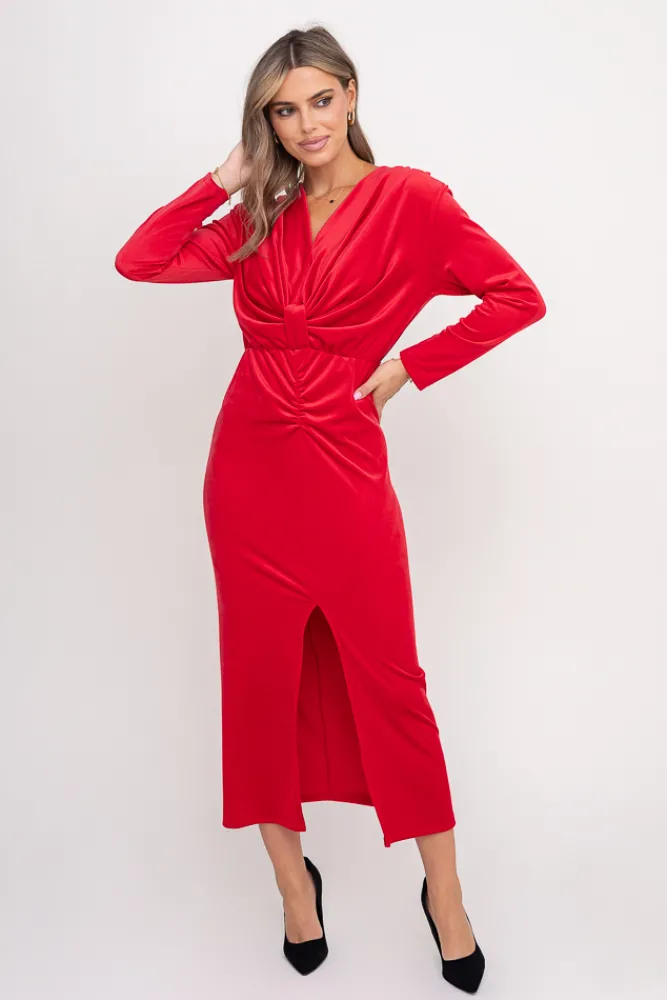 Włoski Czerwona Sukienka welurowa KASIOPI