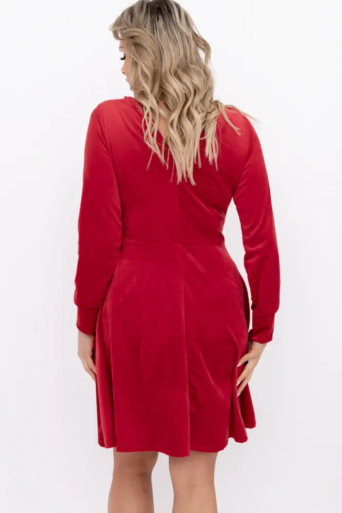 Włoski Czerwona Sukienka welurowa WARKOZIA
