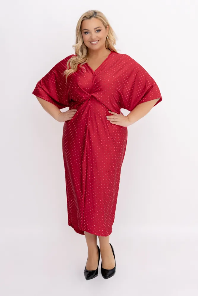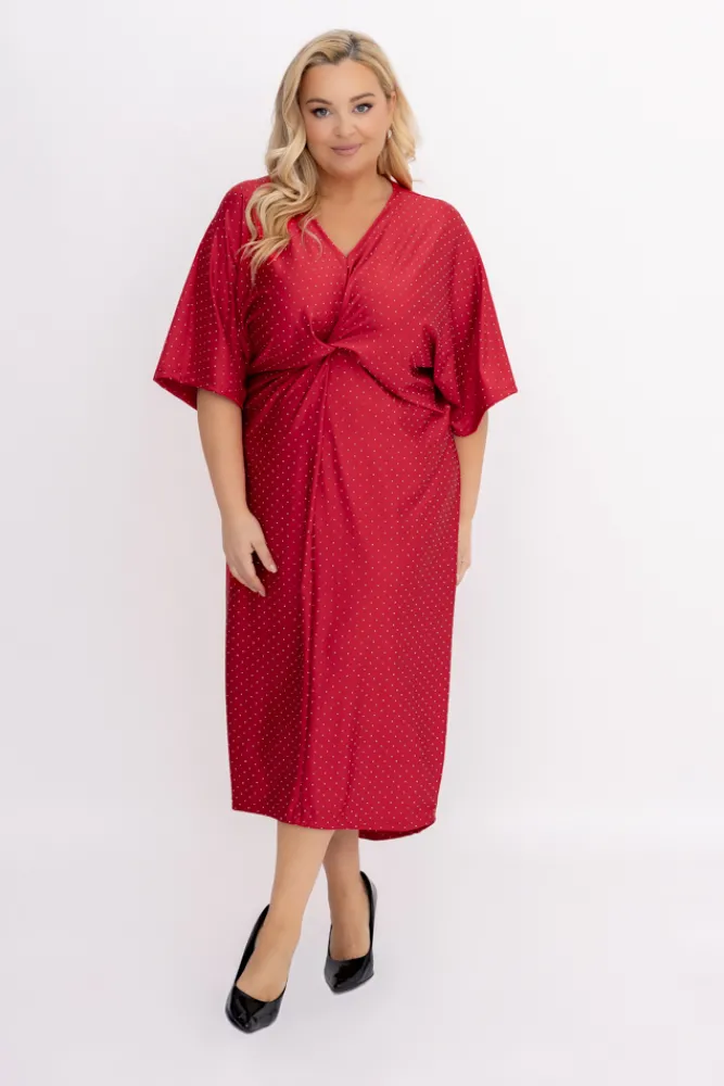 Włoski Czerwona Sukienka z dżetami LOTIGO
