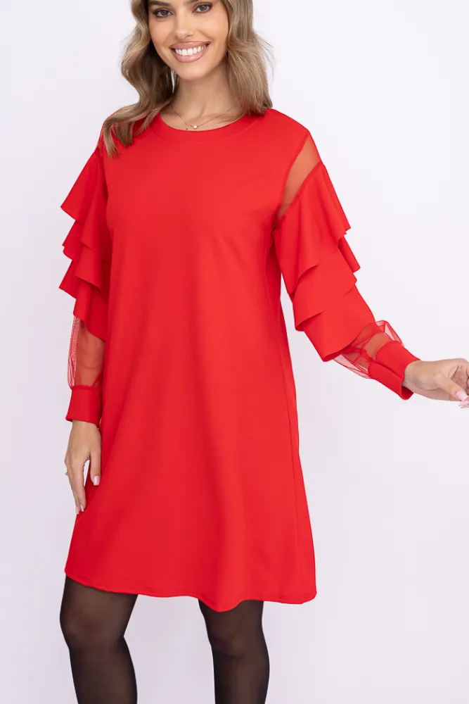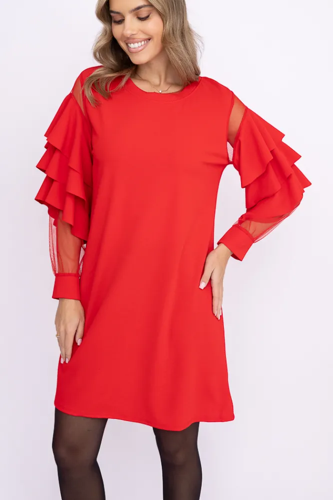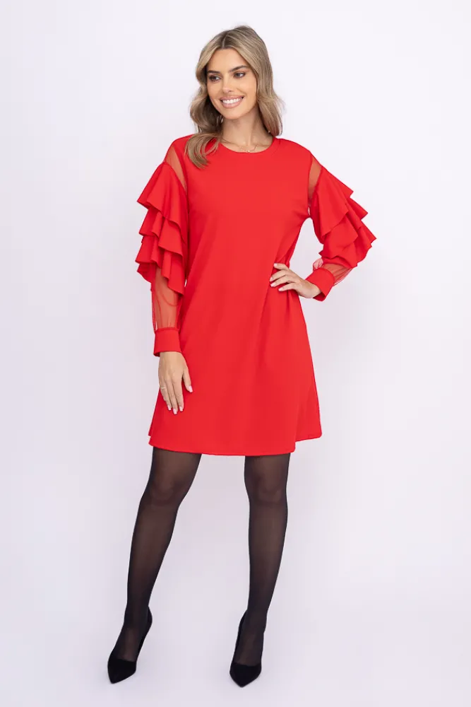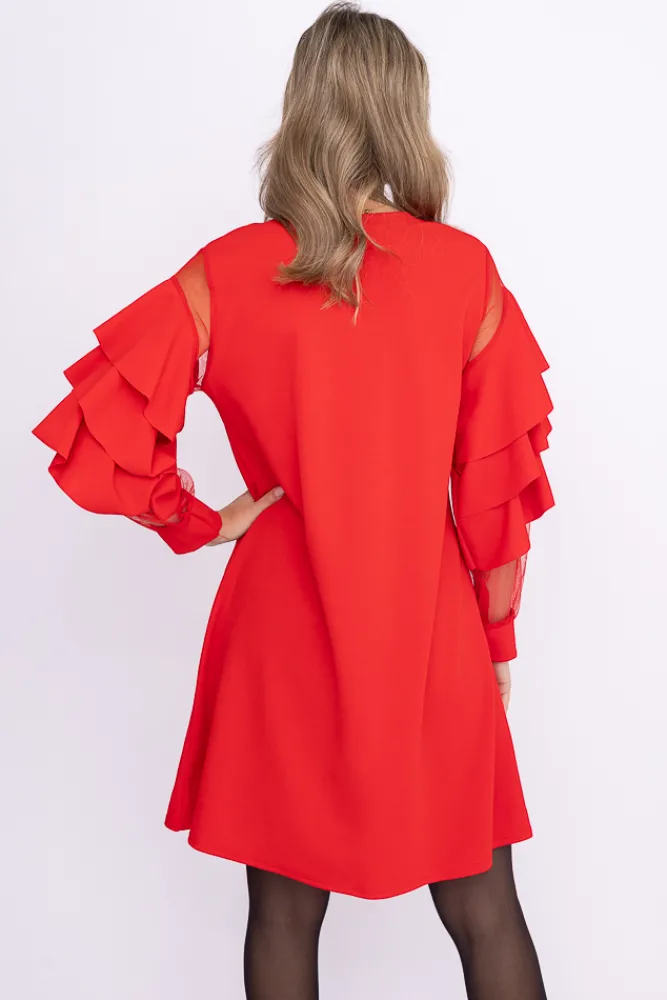 Włoski Czerwona Sukienka z falbanami DARIEN