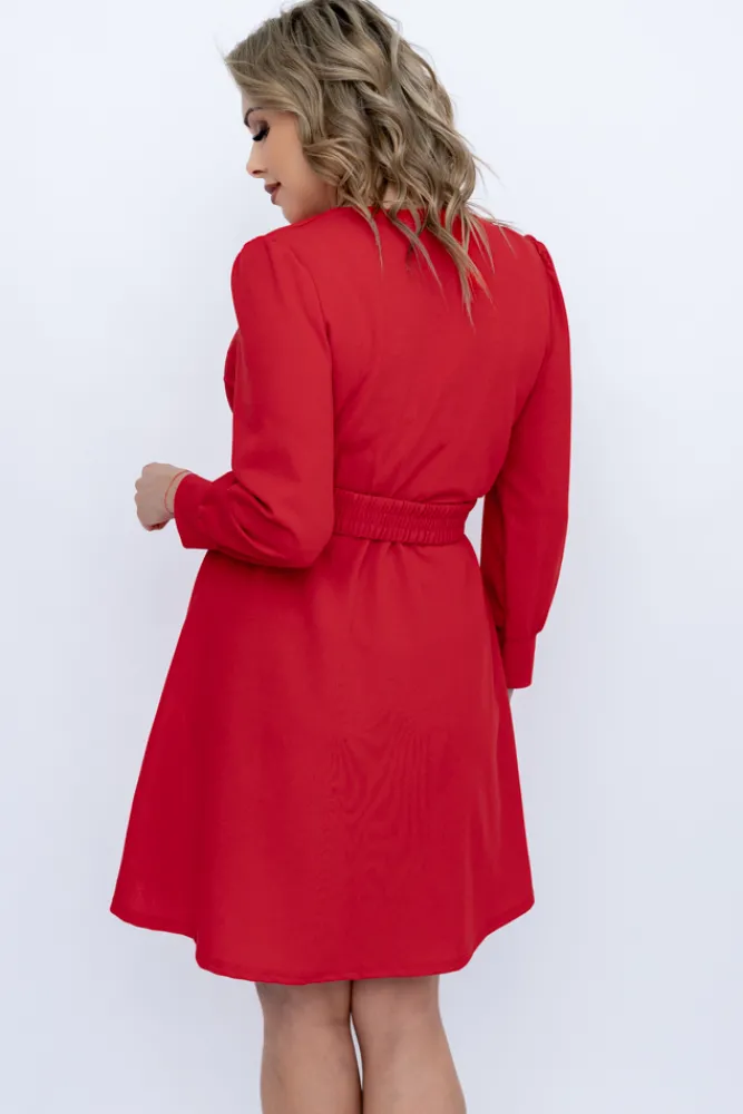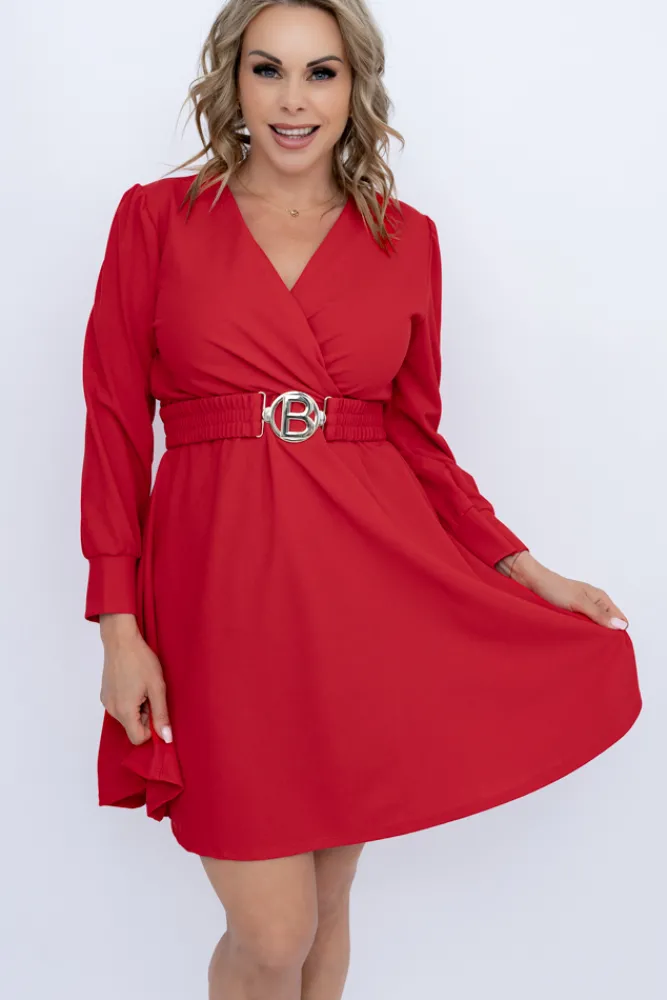 Włoski Czerwona Sukienka z paskiem SARMANIA