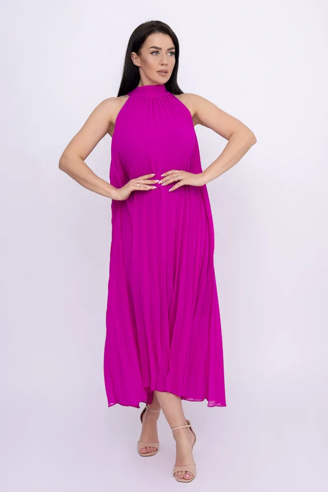 Włoski Fioletowa plisowana Sukienka szyfonowa LUZIO