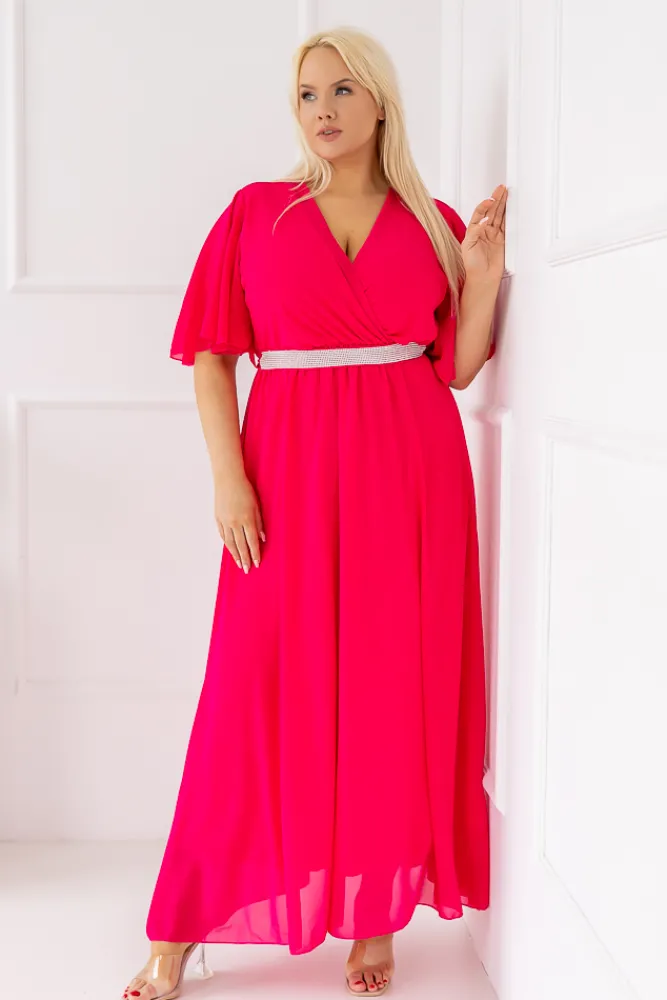 Włoski Fuksjowa Sukienka szyfonowa z paskiem EGELI