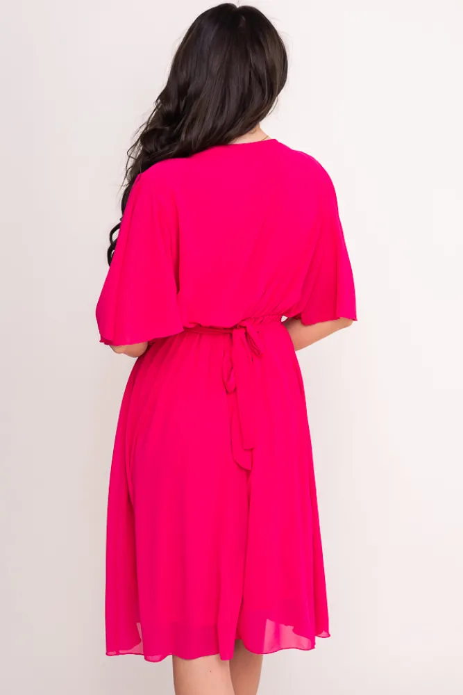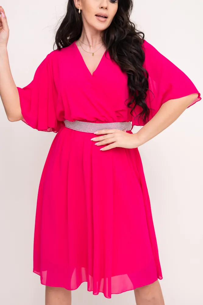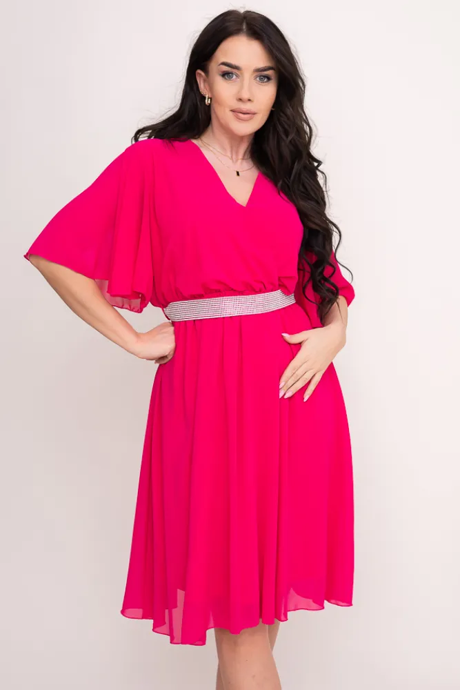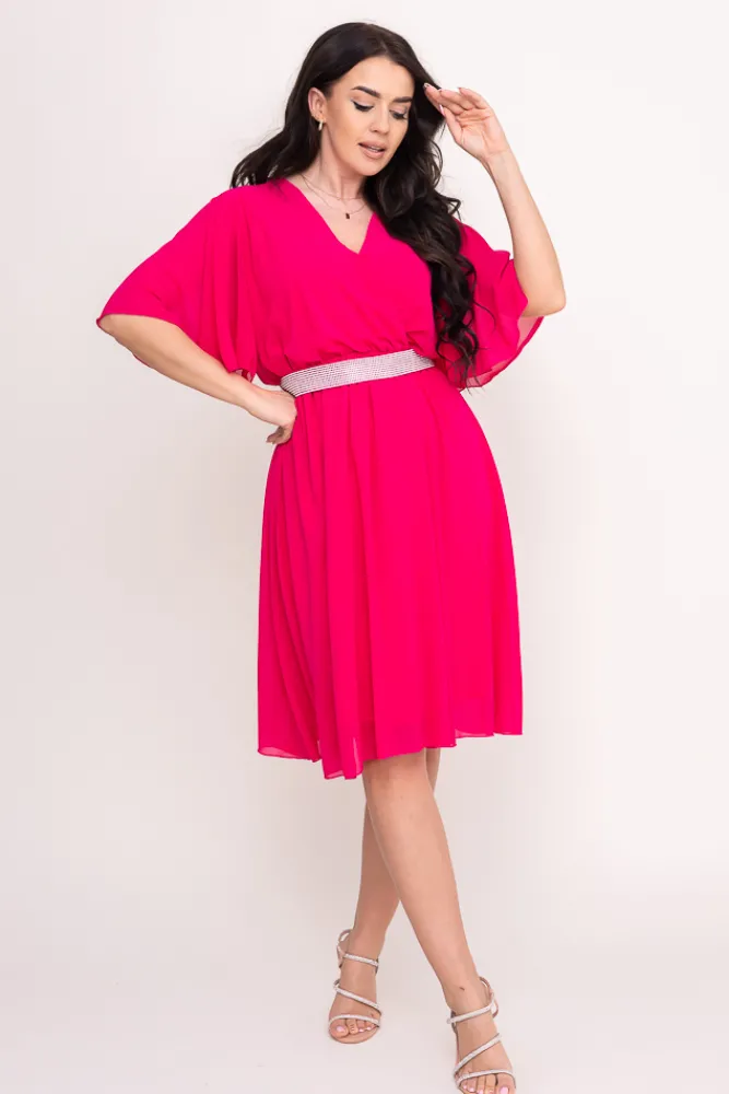 Włoski Fuksjowa Sukienka szyfonowa z paskiem SEMELIA