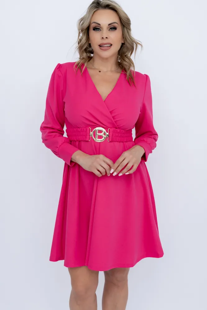 Włoski Fuksjowa Sukienka z paskiem SARMANIA