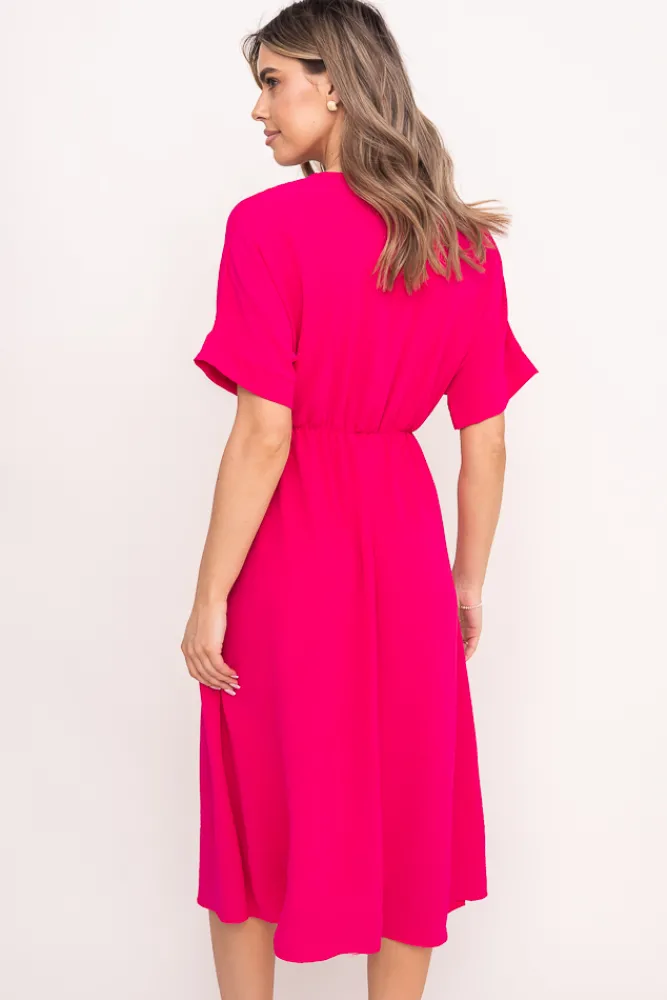 Włoski Fuksjowa Sukienka z rozsuwanym dekoltem TRIZI
