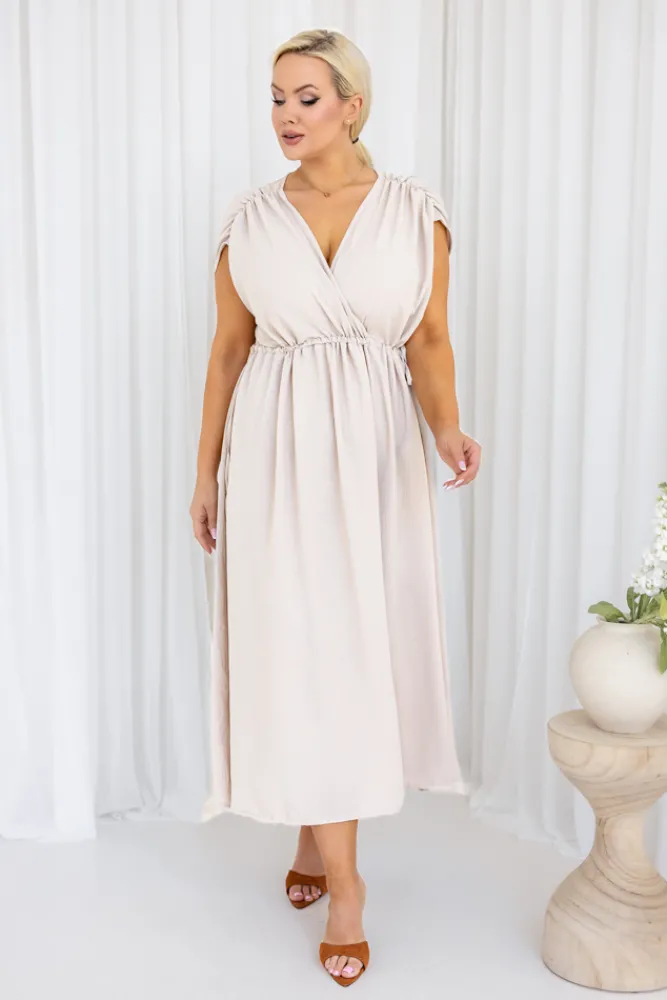 Włoski Jasnobeżowa Sukienka LASTIA