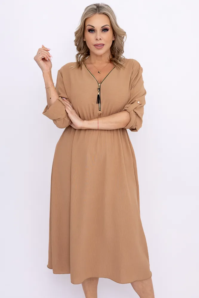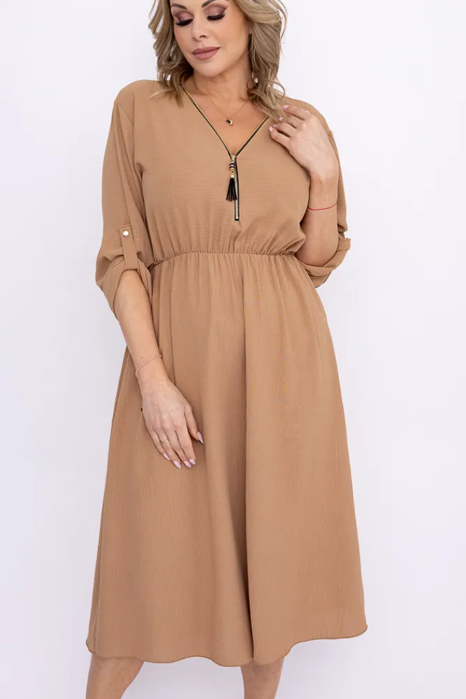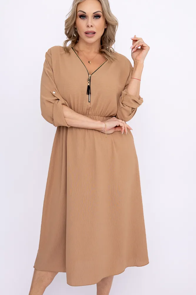 Włoski Jasnobrązowa Sukienka z rozsuwanym dekoltem VERSINA