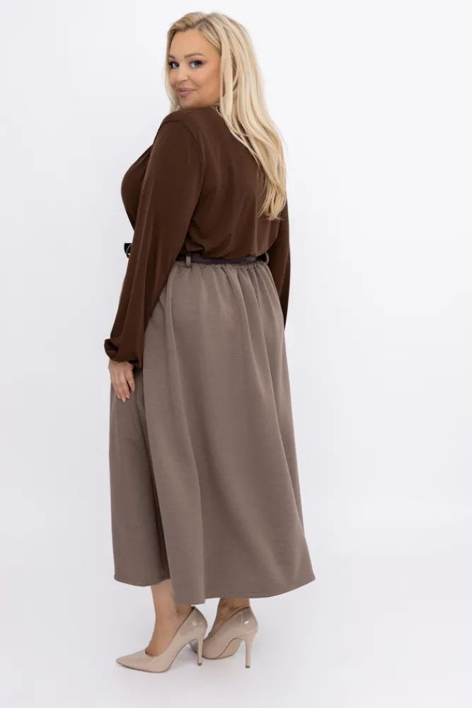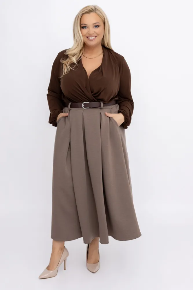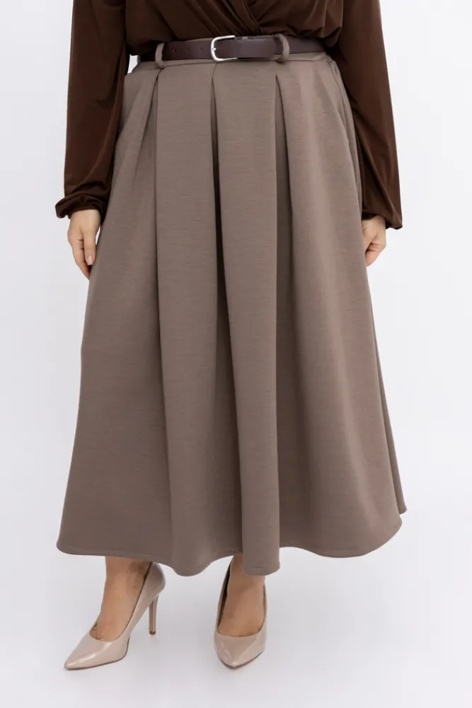 Włoski Kawowa plisowana Spódnica z paskiem TOLIA