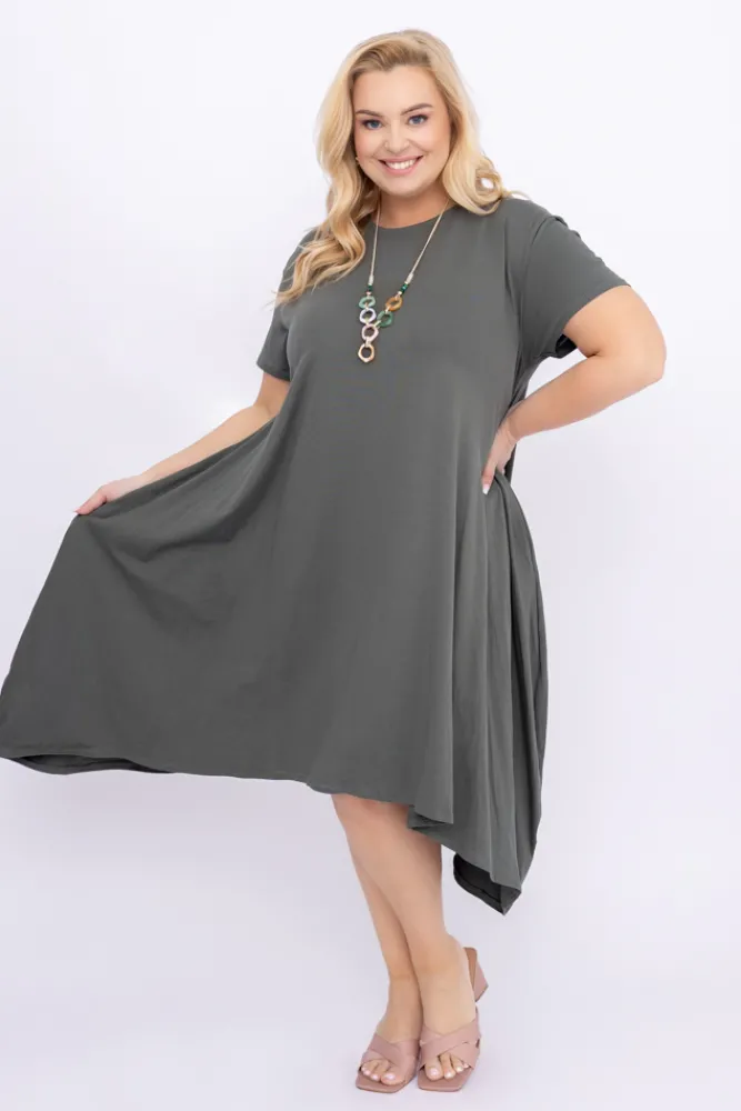 Włoski Khaki Sukienka z wisiorkiem MIRUNDIA