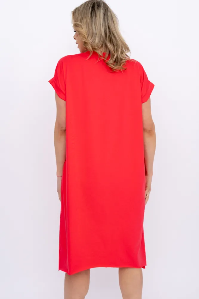 Włoski Koralowa Sukienka LUKRIZO