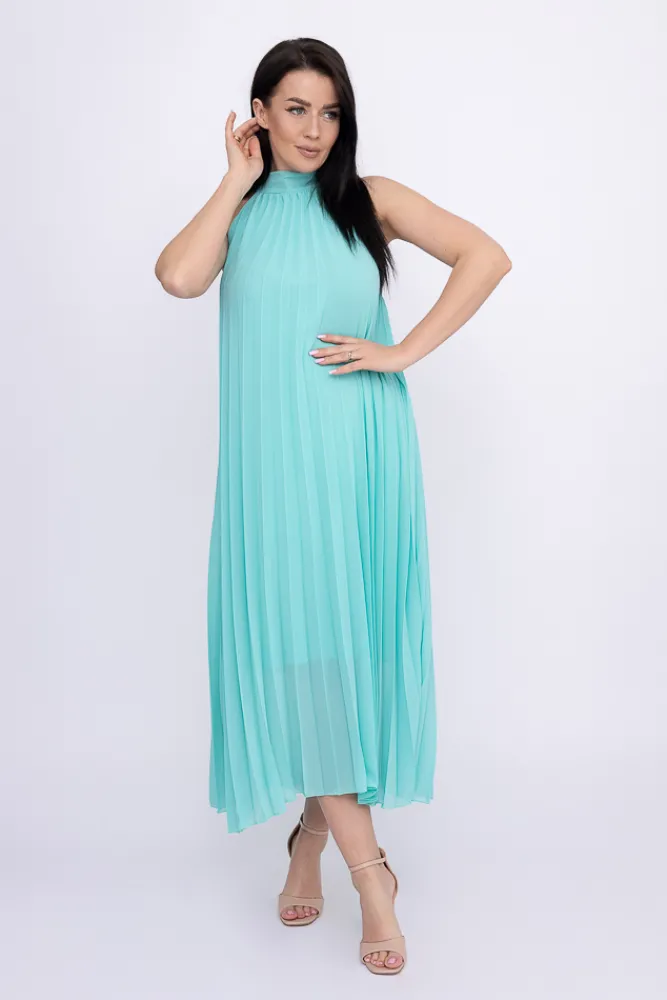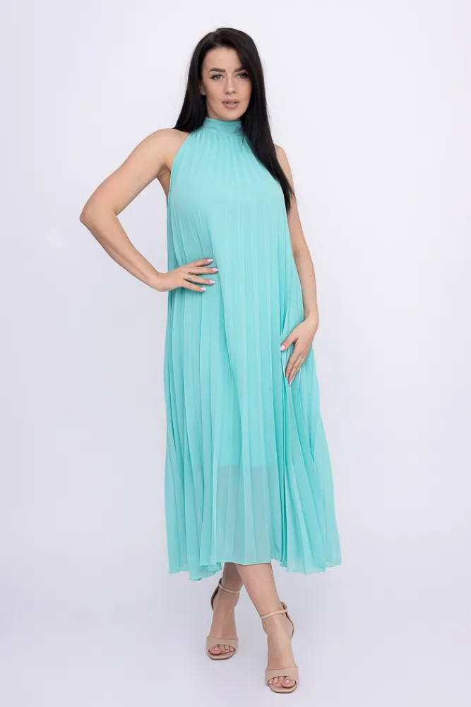 Włoski Miętowa plisowana Sukienka szyfonowa LUZIO