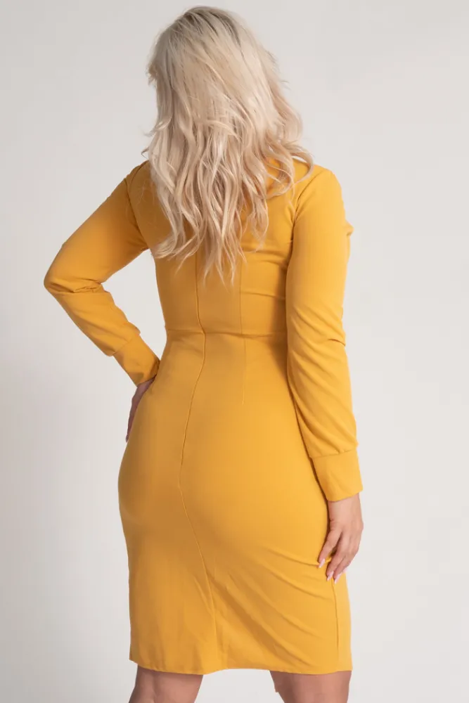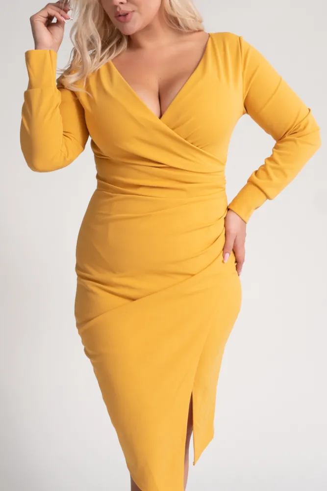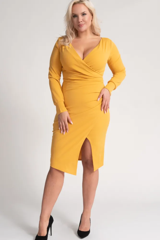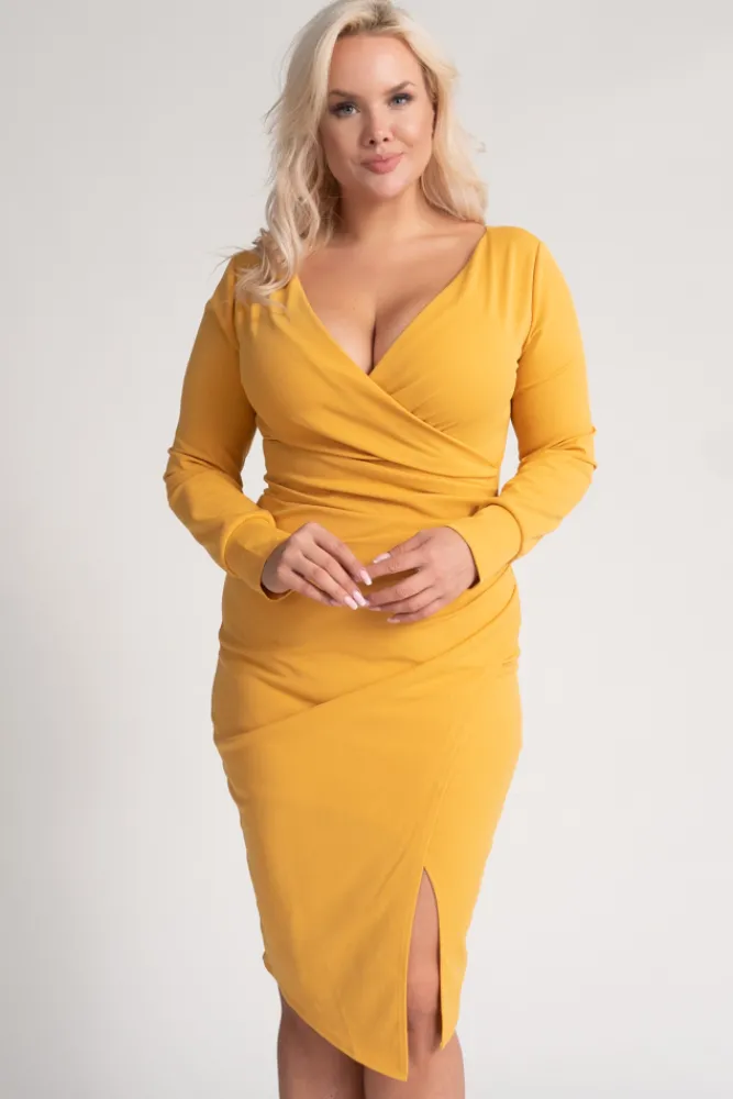 Włoski Musztardowa Sukienka kopertowa NEPIA