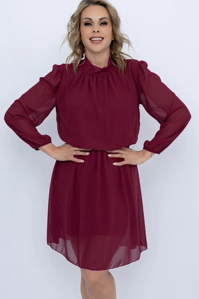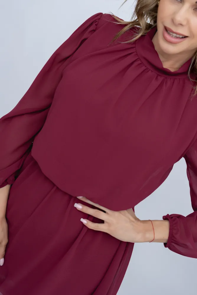 Włoski Wiśniowa Sukienka szyfonowa SEGERTO