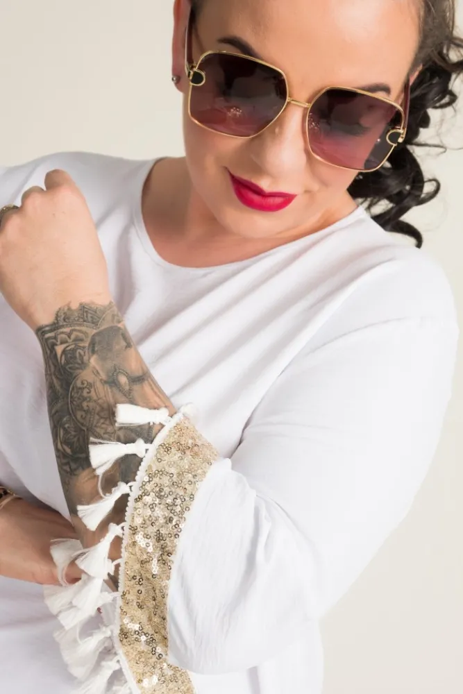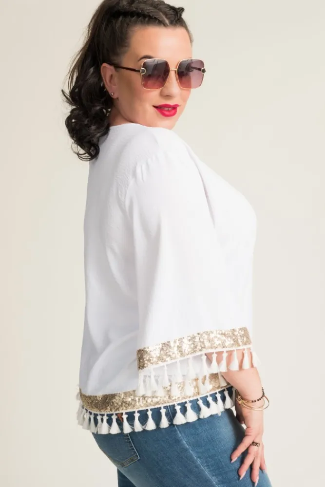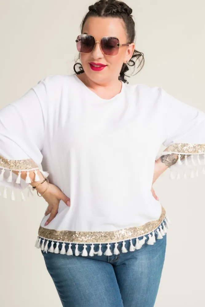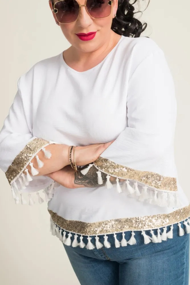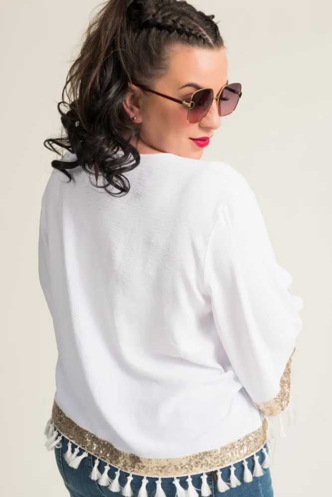 Damskie Polski Biała Bluzka z frędzelkami GARMINA