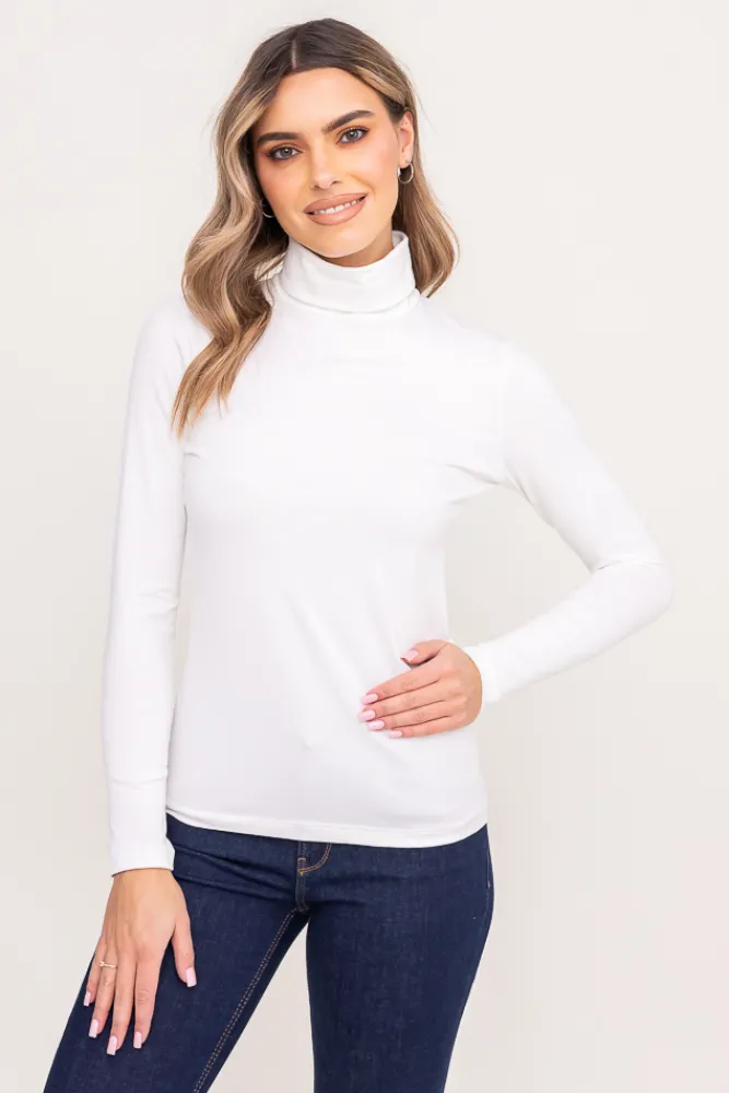 Damskie Polski Biała Bluzka z golfem LUZIO