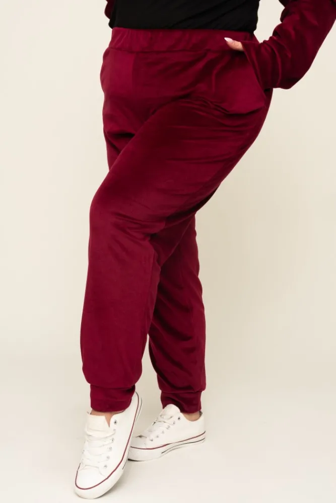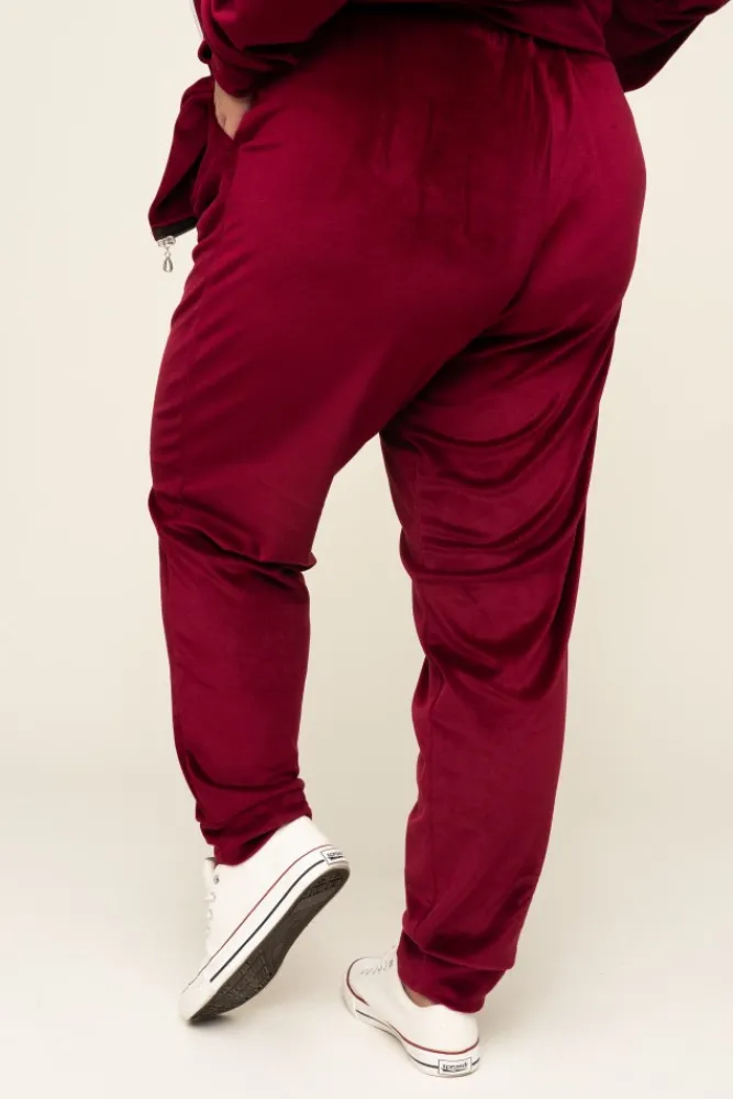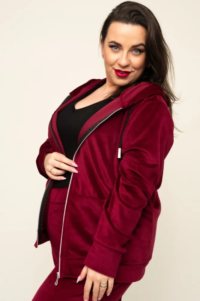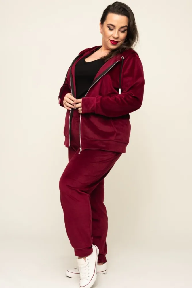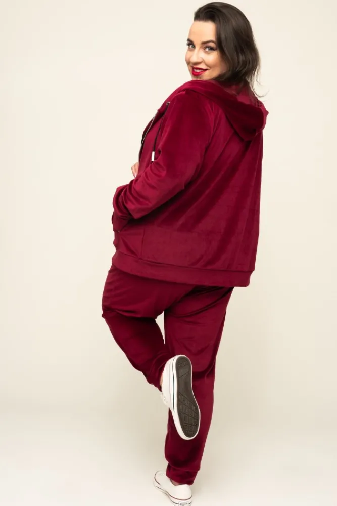 Damskie Polski Bordowy Komplet Dresowy POLIN Welurowy