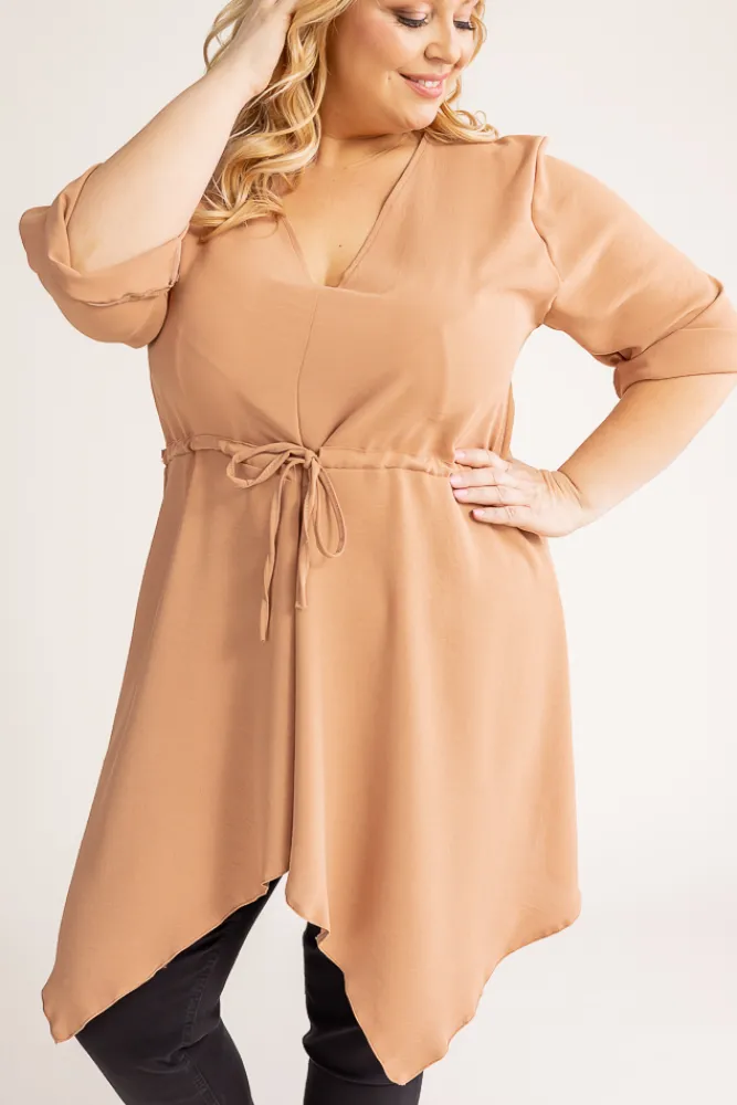 Damskie Polski Jasnobrązowa Tunika asymetryczna CLARIN