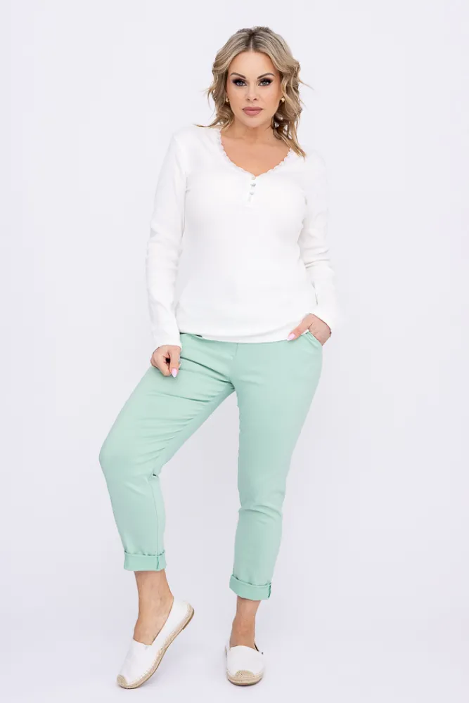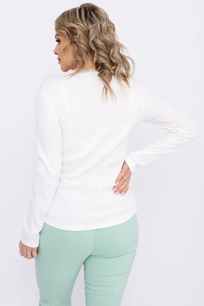 Damskie Włoski Biała Bluzka prążkowana SEMENA