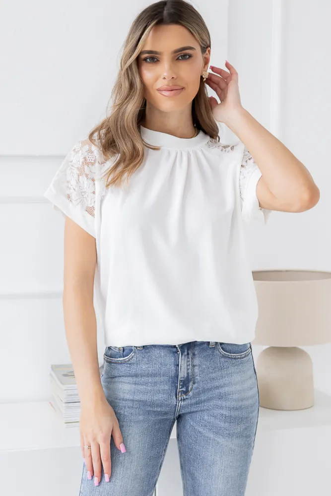 Damskie Włoski Biała Bluzka z koronkowymi rękawami BELOXI