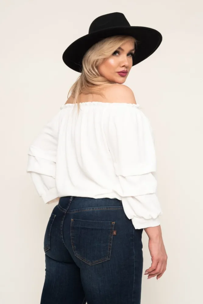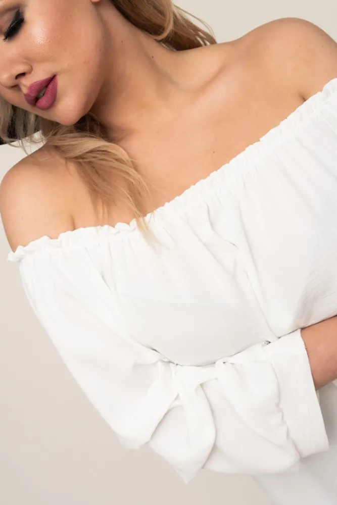 Damskie Włoski Biała Bluzka z marszczonymi rękawami NANSI