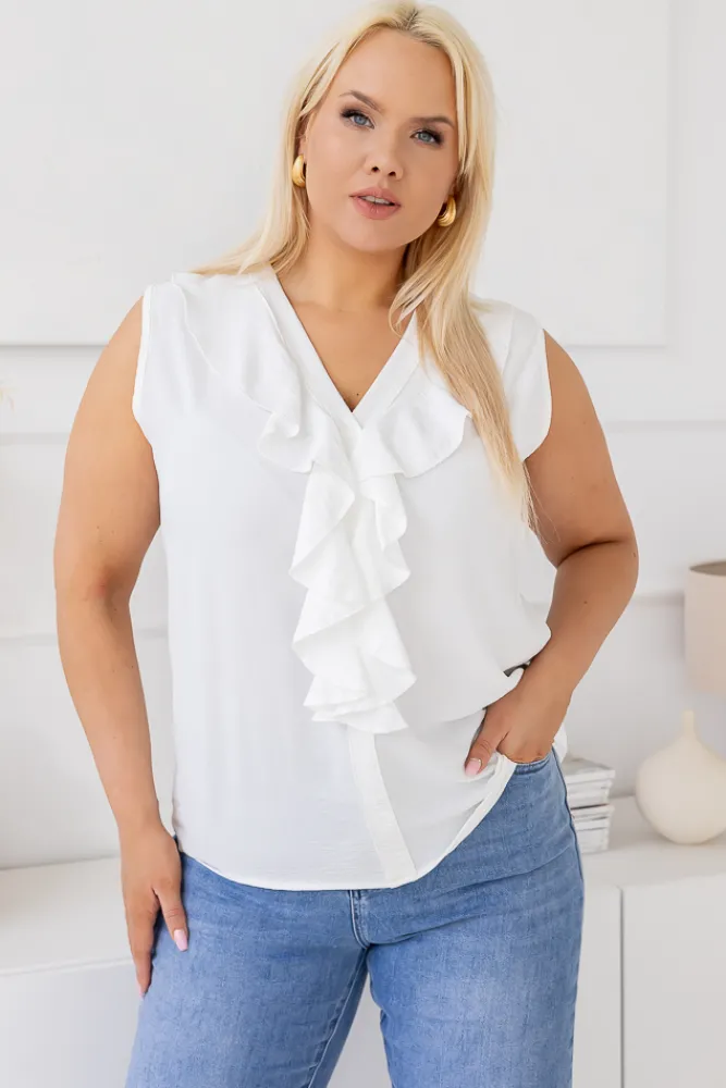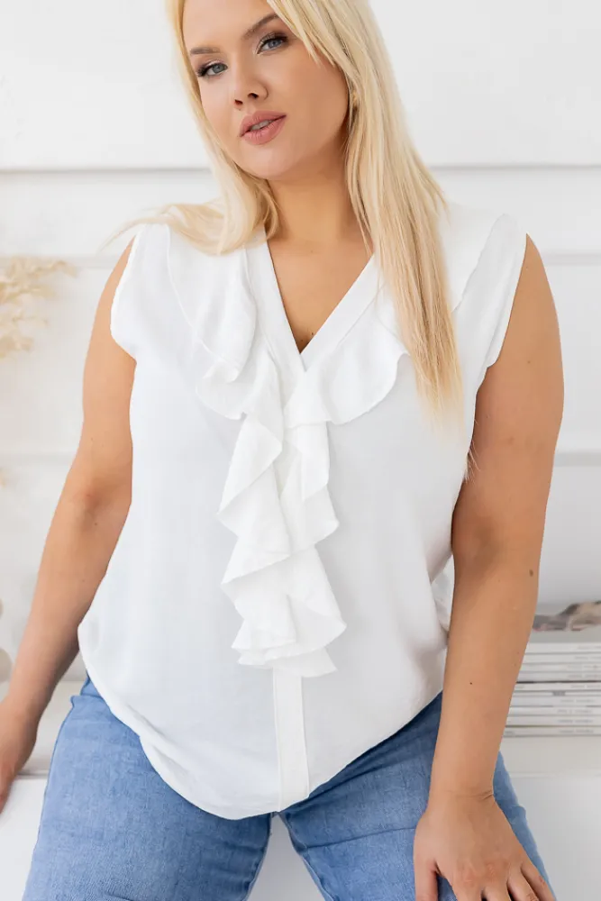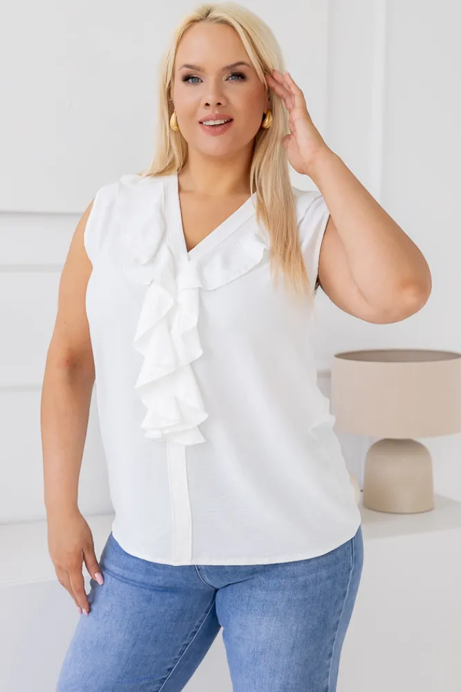 Damskie Włoski Biała Bluzka z żabotem ZENTIO