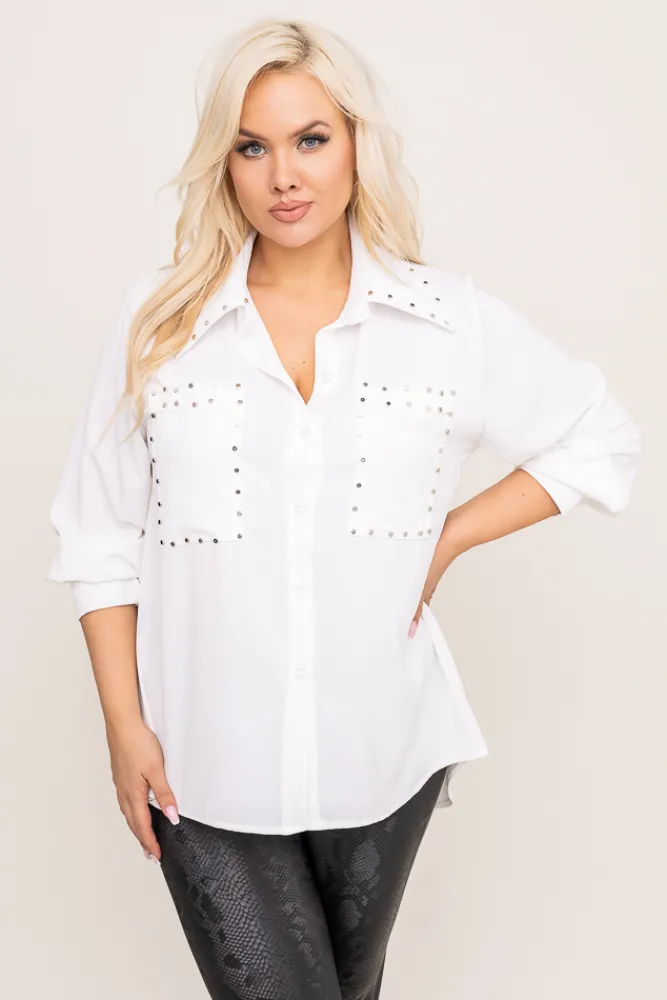 SKU: SKUkzGPTJuZSV Kategorie: Koszule Damskie, Odzież Damska Tagi: Biały, Damskie, Włoski Marka: Włoski