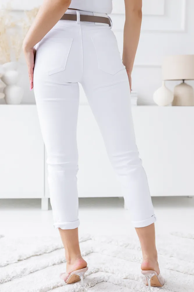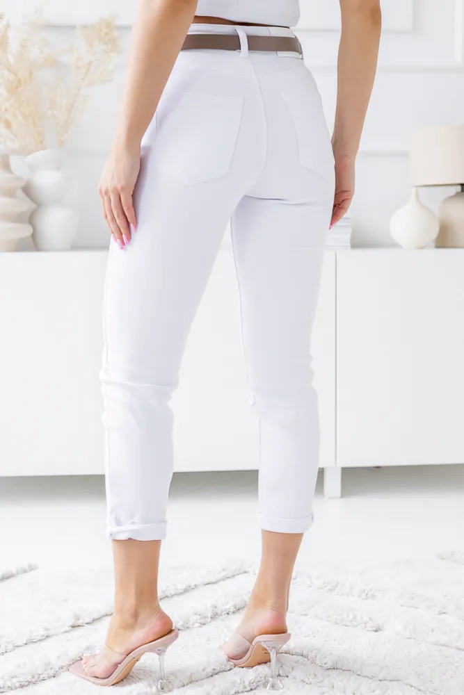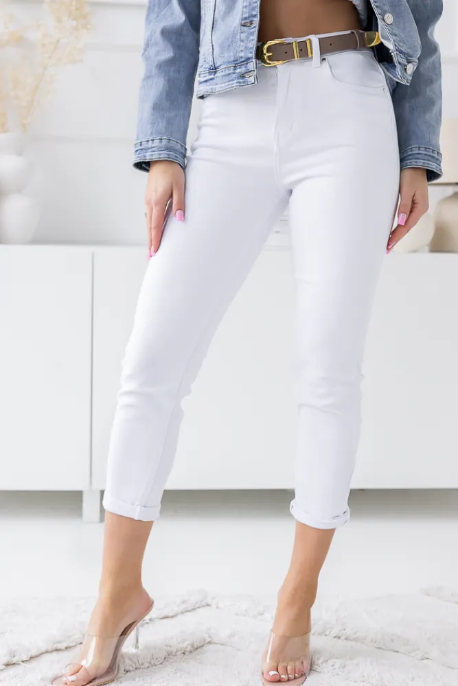 Damskie Włoski Białe Spodnie Jeansowe GREPI