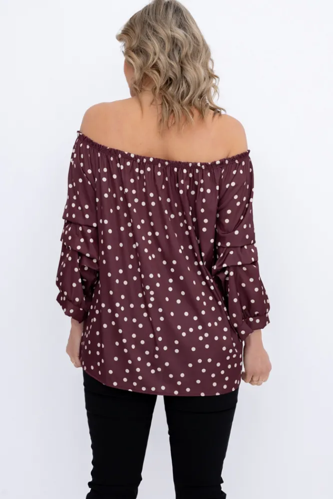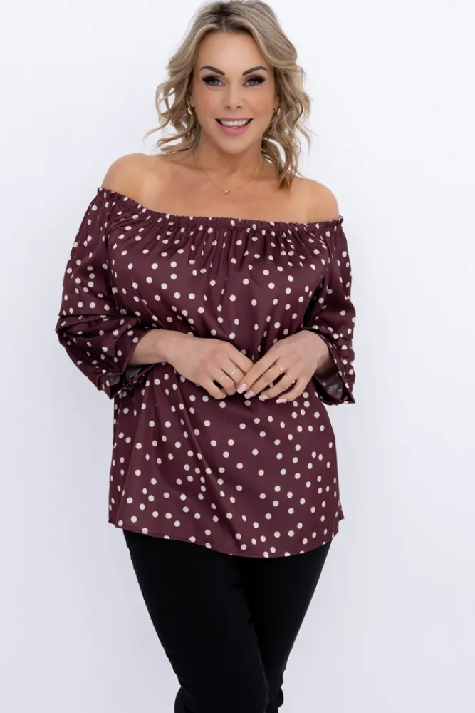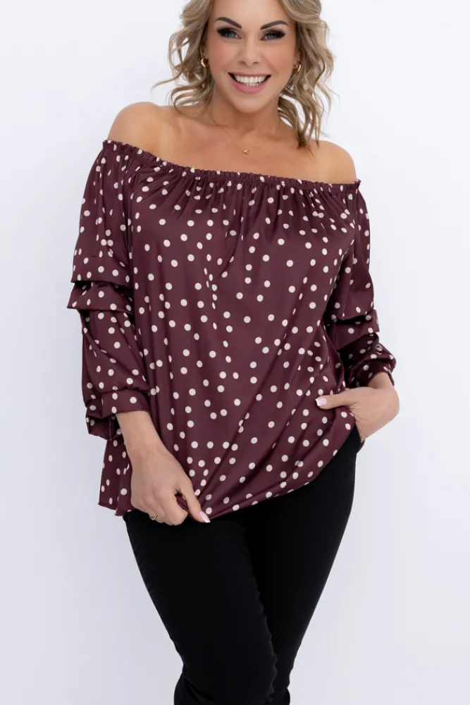 Damskie Włoski Bordowa Bluzka z marszczonymi rękawami HENDI Wzór 1
