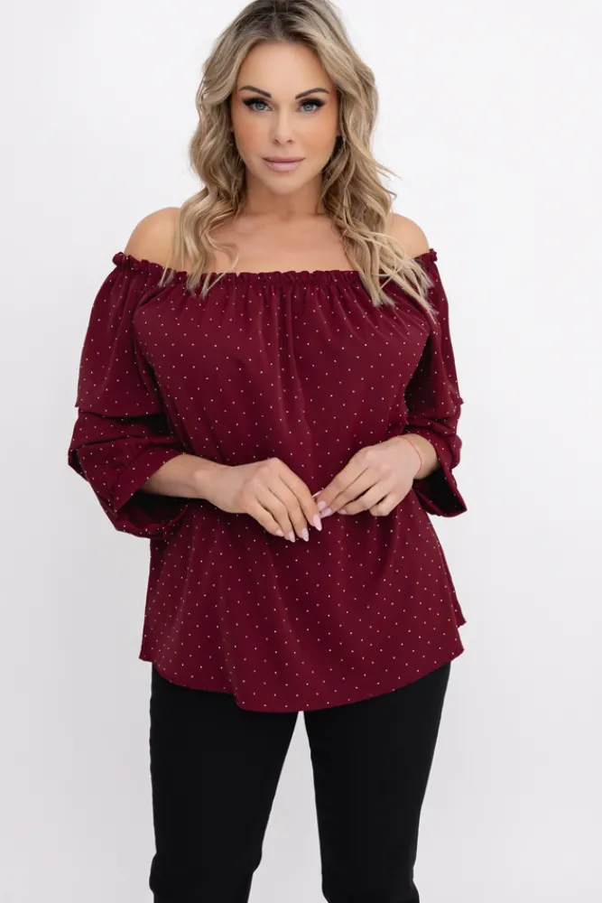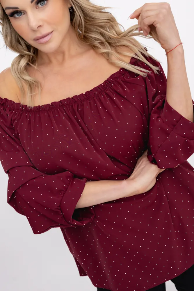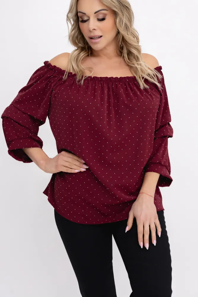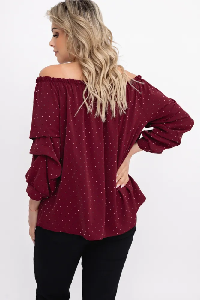 Damskie Włoski Bordowa Bluzka z marszczonymi rękawami HENDI Wzór 2