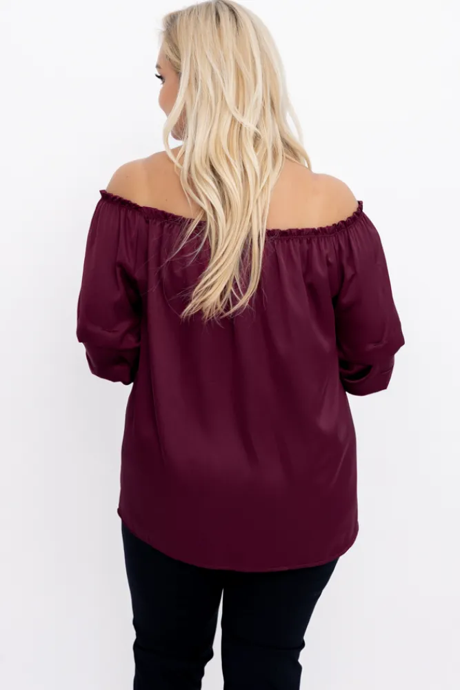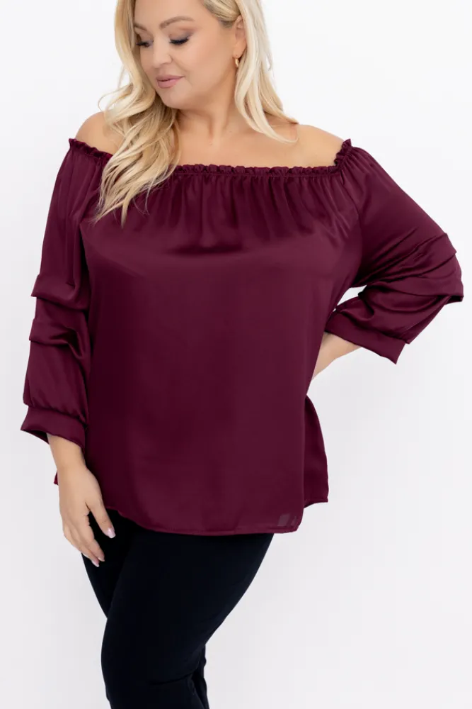 Damskie Włoski Burgundowa Bluzka z marszczonymi rękawami HENDI