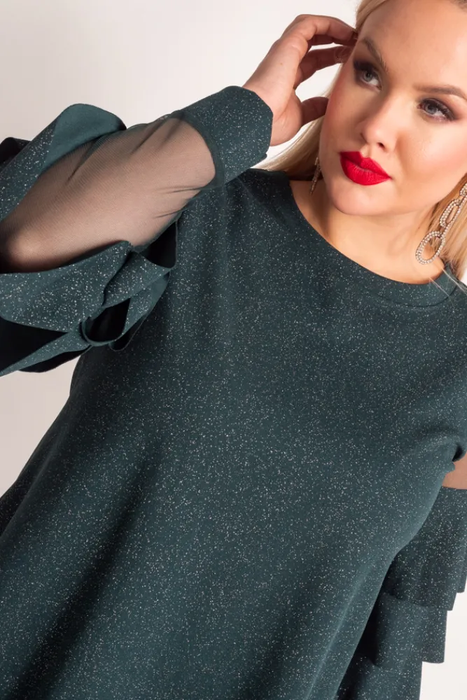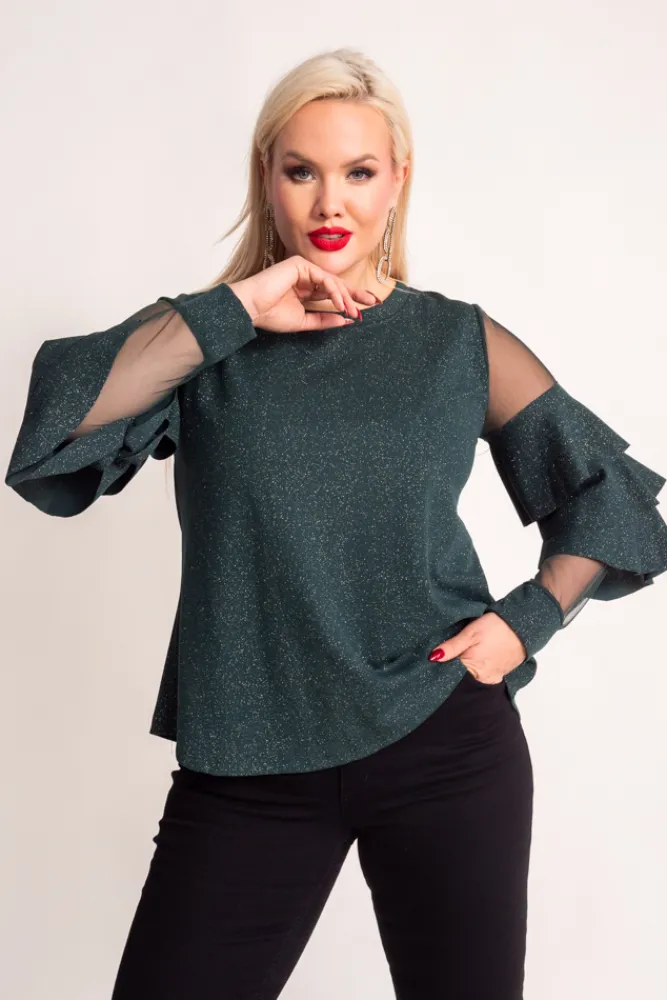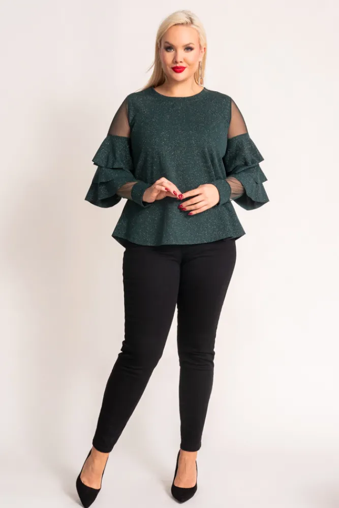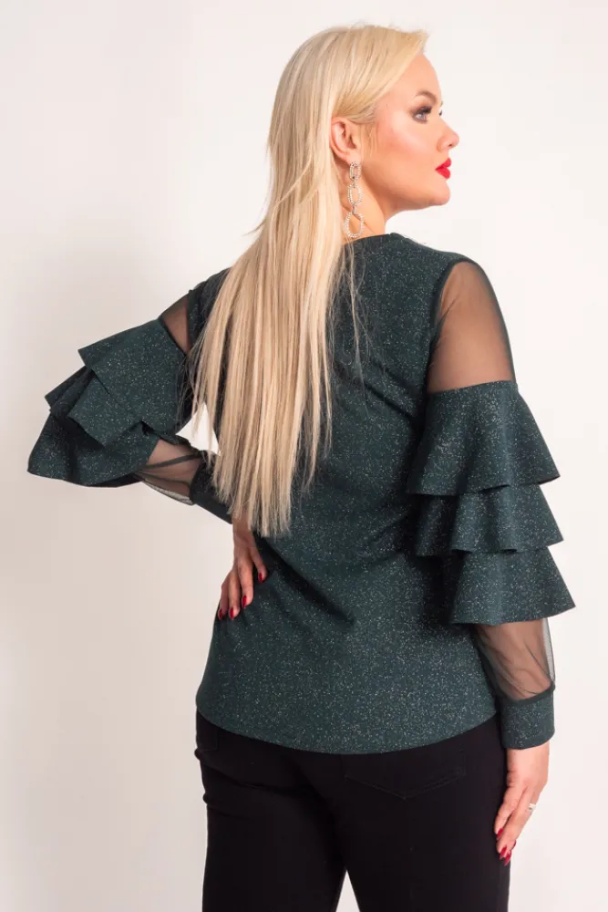 Damskie Włoski Butelkowozielona Bluzka z falbanami VELI