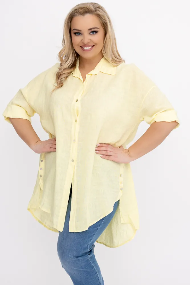 Damskie Włoski Cytrynowa Koszula lniana LOGARIO
